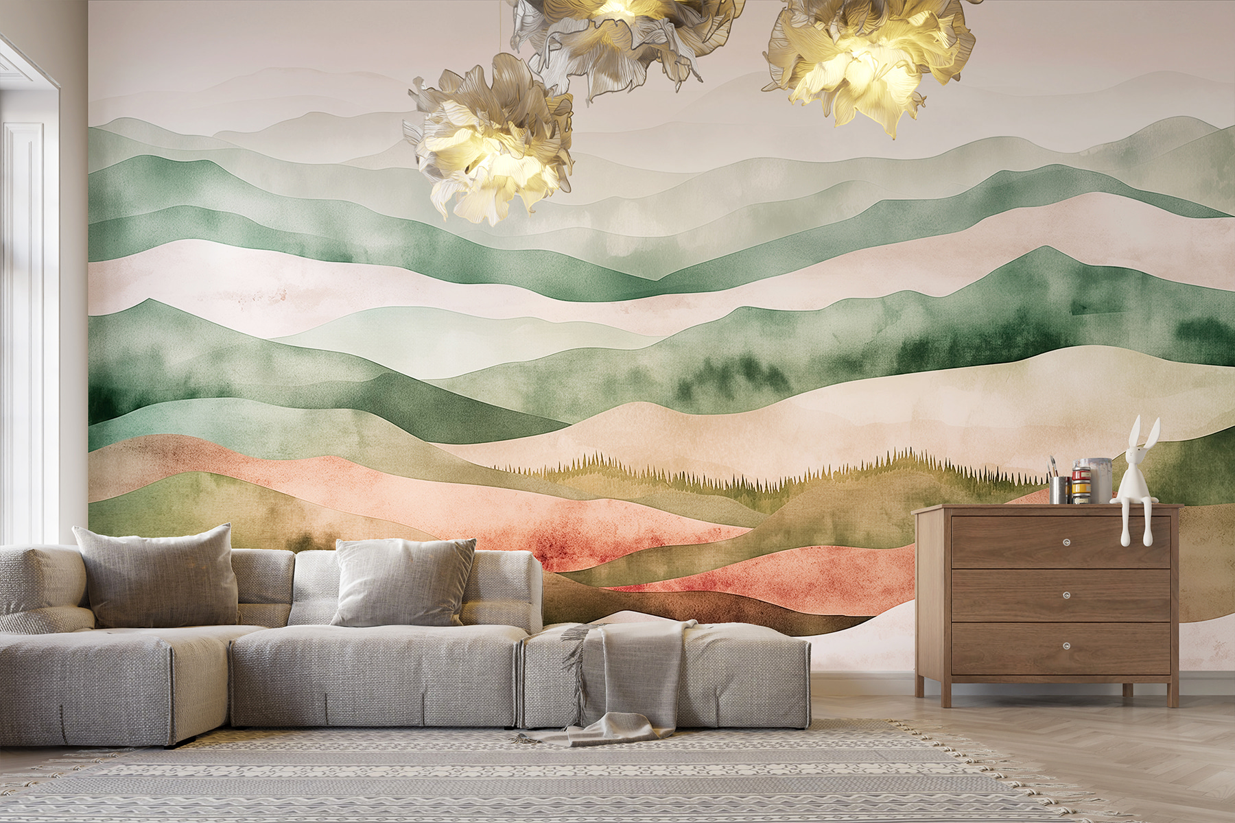 Transforming a room just got easier with this stunning wall mural of rolling hills and trees. Imagine waking up to soft greens and gentle browns that invite a calm, earthy vibe into your space. It’s like having a slice of nature right in your living room! This mural creates a sense of peace, making every day feel like a mini getaway. Perfect for spaces where relaxation is the goal—turn your reading nook into a serene escape. A touch of art can turn walls into windows to a tranquil landscape, offering a breath of fresh air every time you walk by. It’s not just decor; it’s a mood!