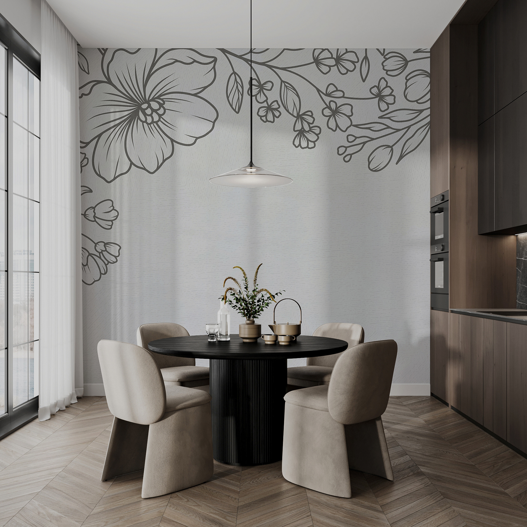 Transform any room into a serene retreat with this stunning wall mural featuring delicate black and white flowers on a crisp white background. It’s like bringing a piece of a tranquil garden indoors—without the need for a green thumb! Imagine stepping into your space and feeling instantly refreshed, as if a gentle breeze filled with floral notes just swept through. Whether it’s the living room, bedroom, or even a cozy reading nook, this mural adds a touch of elegance and calm. Friends will compliment your chic taste, and you might just find yourself daydreaming a little more often. Perfect for those who appreciate understated beauty—a true decor gem!