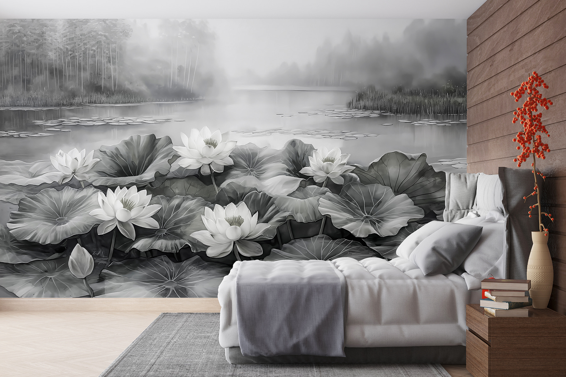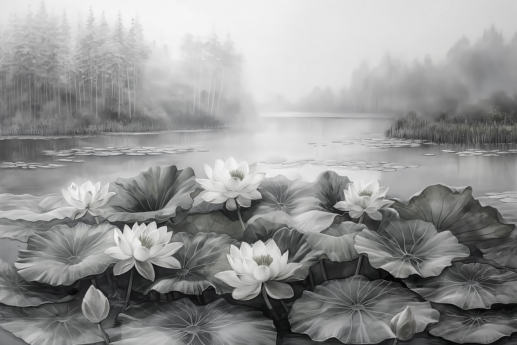 Transform a dull wall into a serene escape with this stunning mural of white flowers floating on a tranquil lake. It’s like bringing a slice of nature right into your space, where the misty background seems to whisper sweet nothings. Imagine sipping morning coffee or cozying up with a book while gazing at this calming scene—talk about mood-lifting! Plus, who doesn’t love the grace of water lilies? They say peace is like a warm hug, and this mural delivers just that—perfect for any room needing a touch of tranquility or a bit of whimsy. Dive into your daydreams with style!