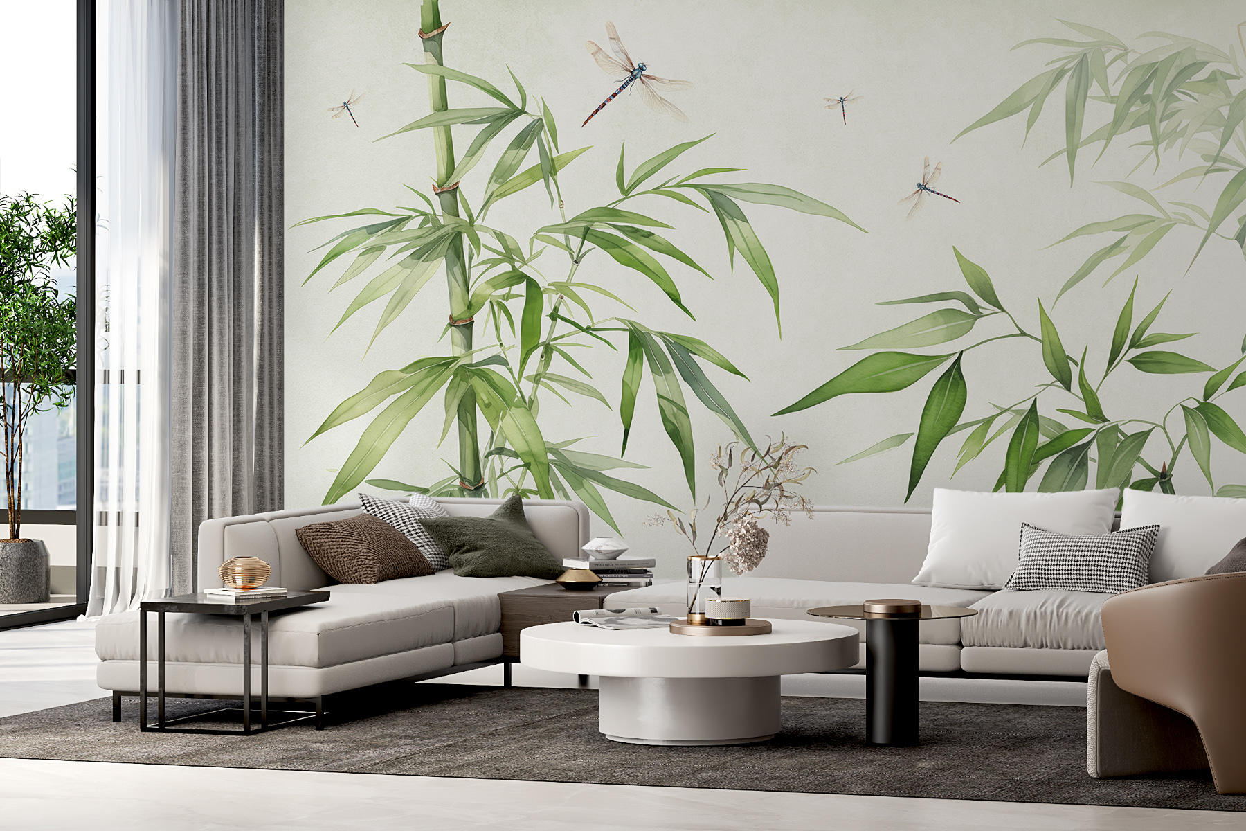 Transform any room into a serene escape with the “Dragonflies on a Bamboo Branch” mural. This beauty captures delicate dragonflies flitting about lush bamboo, creating a peaceful vibe that feels like a gentle breeze. Imagine sipping tea with this peaceful scene as your backdrop—sounds dreamy, right? It’s like bringing a slice of nature indoors without the pesky bugs! Perfect for a living room or a cozy reading nook, this mural invites a touch of tranquility. Let the calming greens and soft hues inspire relaxation and spark joy in everyday moments. Who wouldn’t want to feel a little closer to nature?