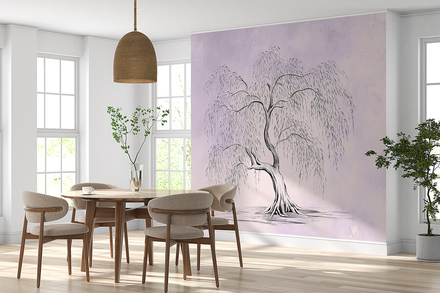 Transform your space with the “Wall Murals Tree with a Long Stem.” This stunning piece captures the grace of a willow, its drooping branches dancing in a dreamy haze of soft lavender. Imagine cozying up in a reading nook with this mural as your backdrop—talk about a peaceful vibe! It’s like bringing a slice of nature indoors without the pesky bugs. Plus, the intricate details invite daydreams about wandering through enchanted forests. Perfect for living rooms or cozy corners, this mural makes every glance a mini escape to serenity. Add a touch of whimsical charm that says, “Oh, this? Just a little nature magic.”
