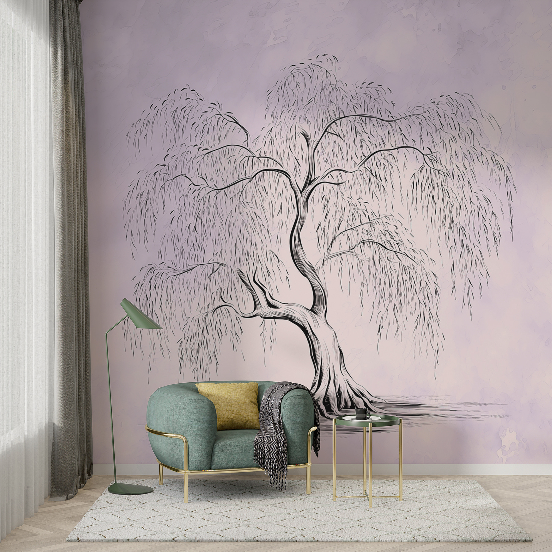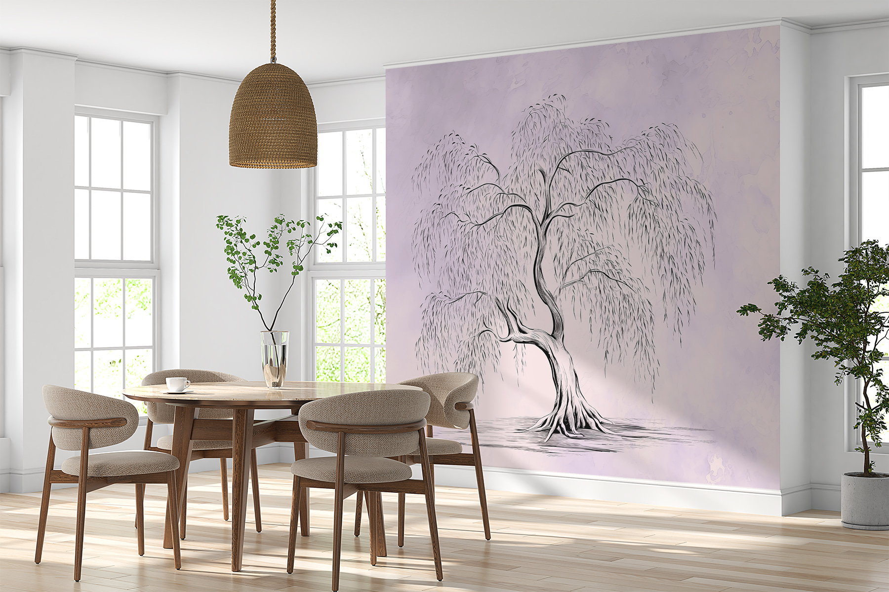 Transform your space with the “Wall Murals Tree with a Long Stem.” This stunning piece captures the grace of a willow, its drooping branches dancing in a dreamy haze of soft lavender. Imagine cozying up in a reading nook with this mural as your backdrop—talk about a peaceful vibe! It’s like bringing a slice of nature indoors without the pesky bugs. Plus, the intricate details invite daydreams about wandering through enchanted forests. Perfect for living rooms or cozy corners, this mural makes every glance a mini escape to serenity. Add a touch of whimsical charm that says, “Oh, this? Just a little nature magic.”