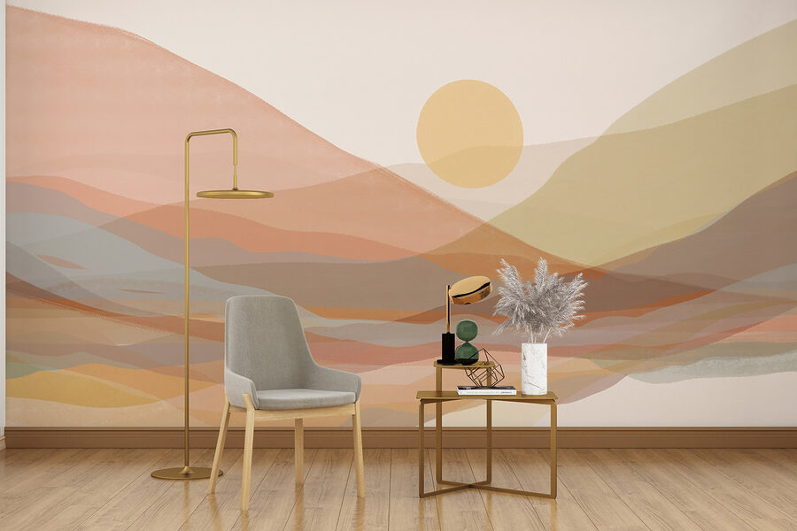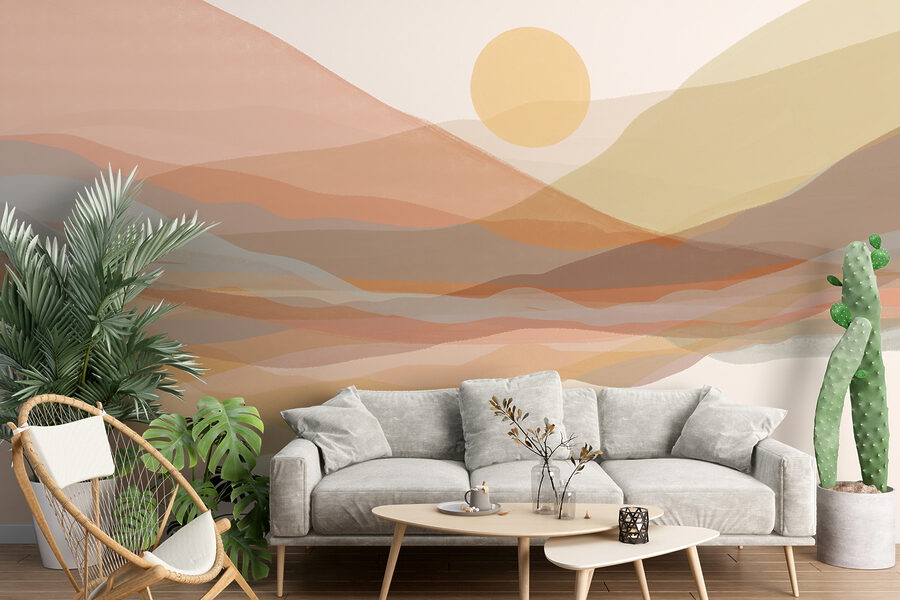 Brighten up any room with the “Wall Murals Sun in the Sky.” This mural is like a sunny day in artistic form—soft, flowing colors dance across the wall, creating a serene landscape that whispers relaxation. Imagine walking into your space and feeling that warm embrace, as if you’ve just stepped into an artist’s daydream. The gentle curves and pastel tones invite cozy moments with a coffee or afternoon chill. It’s a great backdrop for a reading nook or a spot where friends gather—and let’s be honest, it might just inspire some laid-back conversations about life. Perfect for those looking to infuse a peaceful vibe that feels both modern and timeless.
