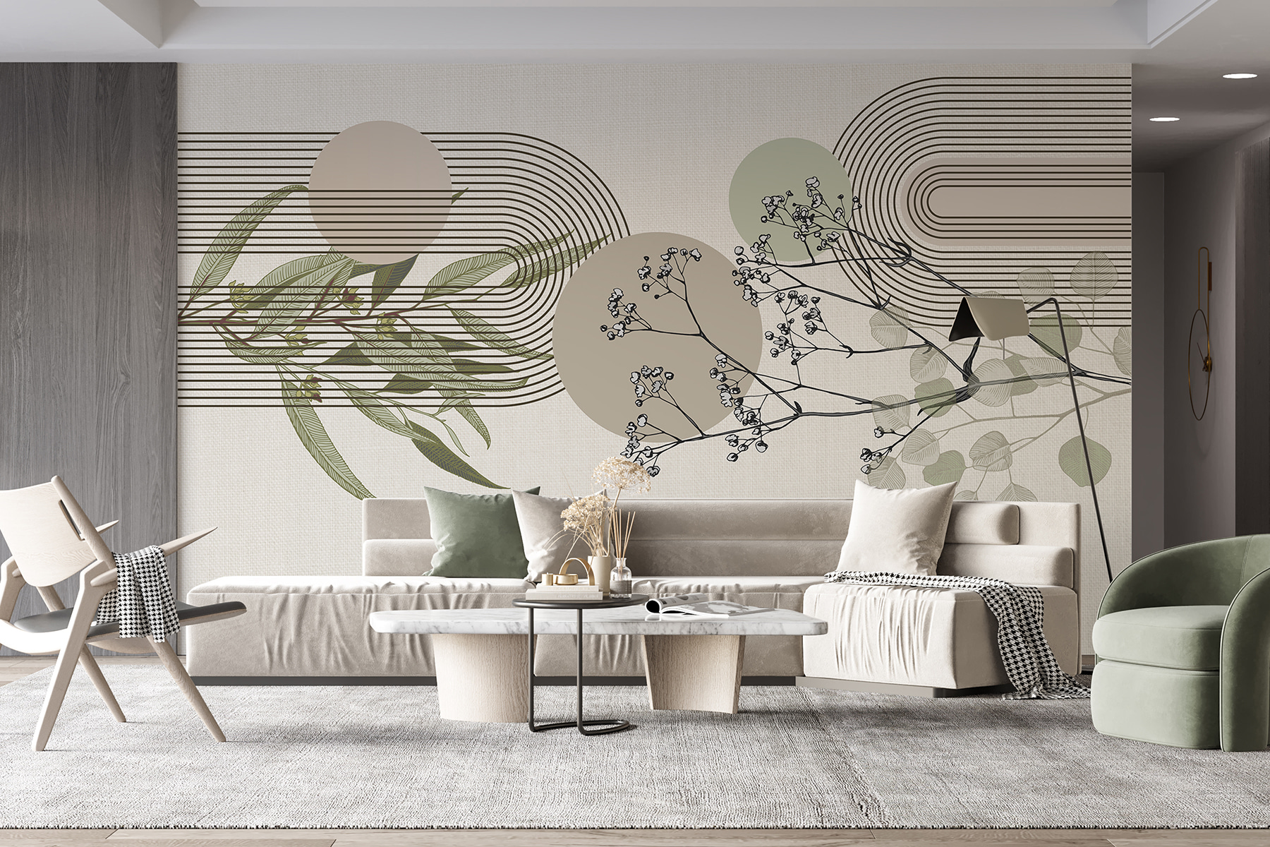 Bring the great outdoors inside with the “Nature Meets Geometric Serenity” wall mural. Imagine sipping your morning coffee while enveloped by nature’s calm—soft greens and gentle lines create a soothing escape right in your living room. This mural blends organic shapes with geometric patterns, adding a touch of sophistication and a dash of whimsy. Perfect for those who want their walls to tell a story, it’s like a breath of fresh air for your space—minus the bugs! Whether hosting friends or enjoying a cozy night in, it transforms any room into a serene retreat.