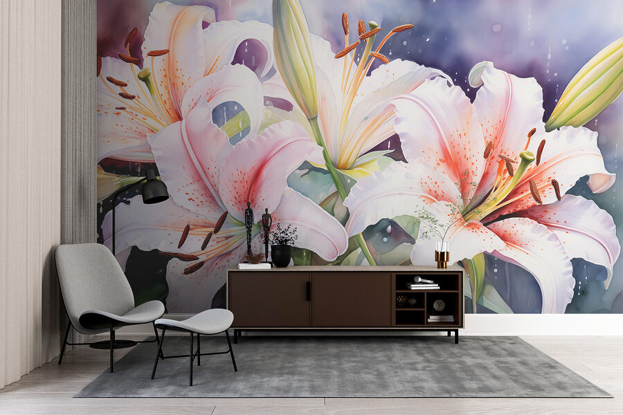 Transform any room with the enchanting “Lilies in Bloom” mural, where nature’s charm comes alive. Imagine stepping into a serene garden, where radiant lilies burst with color—a perfect escape from the daily grind. This mural doesn’t just decorate; it invites warm memories of lazy afternoons and gentle breezes. The watercolor-style design adds a dreamy touch, creating a calming vibe that’s ideal for relaxing spaces. Friends will be asking where you found such a unique piece, and who knows—maybe it’ll inspire a chat about favorite flowers or last-minute trips to botanical gardens. A simple way to bring the outdoors inside!