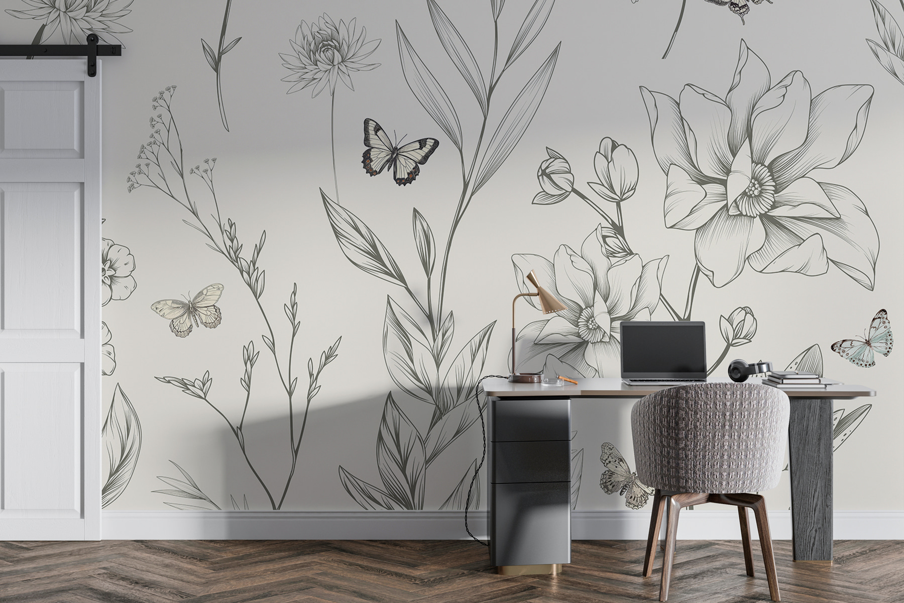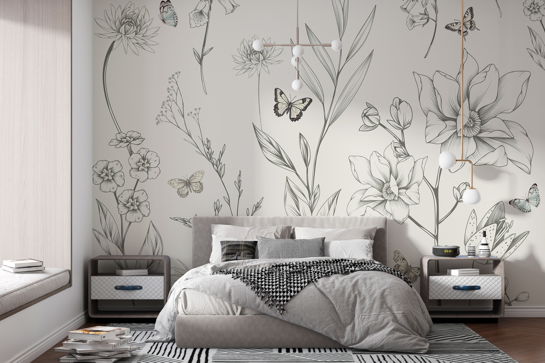 Transform any space into a serene garden with this enchanting wall mural featuring delicate flowers and whimsical butterflies. Imagine stepping into a room that feels like a warm spring day, where the blossoms seem to sway gently with a breeze. The soft, vintage-style illustrations add a touch of charm, inviting a sense of calm and creativity. Perfect for a cozy reading nook or a lively playroom, this mural brings nature indoors without all the pollen. It’s like having a little piece of the outdoors that never wilts—who wouldn’t want that? So, whether it’s a cup of tea or a wild imagination, this mural sets the perfect backdrop for everyday moments.