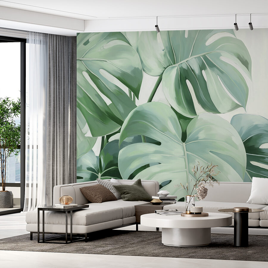Imagine walking into a room that feels like a gentle breeze on a warm day. This “Leafy Greens in Soft Artistic Hues” mural does just that! With its soothing greens and whimsical touches, it transforms any wall into a vibrant oasis. Picture sipping your morning coffee, surrounded by these oversized leaves, and suddenly, the world outside feels just a bit more serene. It’s like having a mini garden right in your living space. Perfect for those who crave nature but might struggle to keep a plant alive—no watering needed! Just sit back, relax, and let these leafy beauties bring the outdoors in.