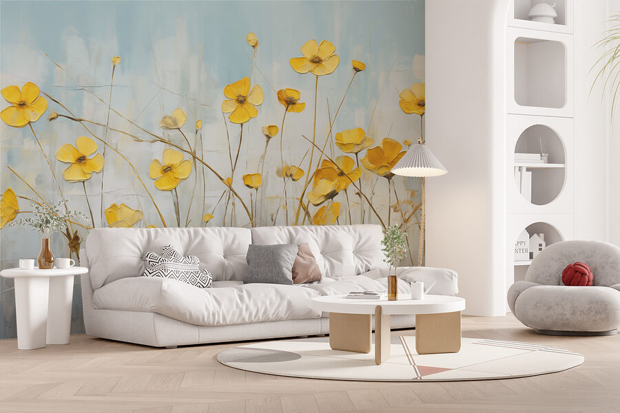 Bring a burst of sunshine indoors with this lovely wall mural featuring vibrant yellow flowers. It’s like having a field of blooms right in your living room, ready to brighten any dull day. Imagine sipping coffee while feeling the gentle warmth of spring every morning. The soft blue background perfectly complements those cheerful petals, creating a serene yet lively atmosphere. Perfect for anyone looking to add a touch of nature, this mural isn’t just decor; it’s a conversation starter, a mood lifter, and a little slice of happiness on your wall. Who wouldn’t smile at that?