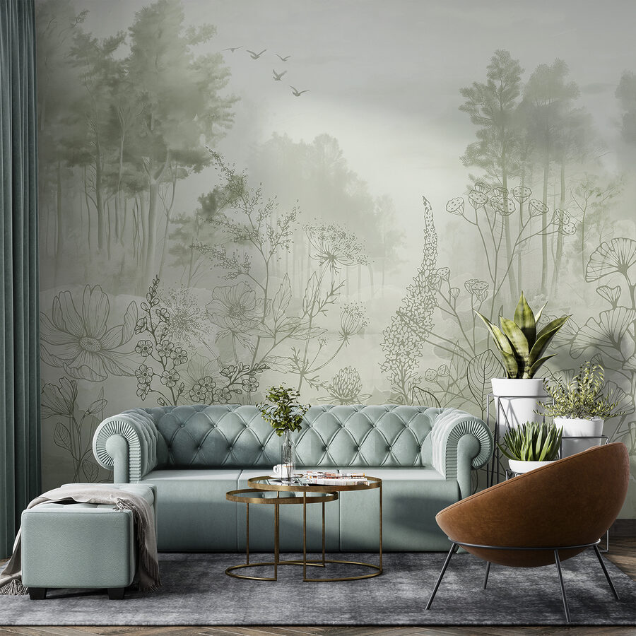 Transform any room into a dreamy escape with this foggy forest mural. Imagine walking into an enchanting wood, where mist dances between towering trees and delicate birds take flight. It’s like stepping into a storybook every time you glance at your wall. The soft hues bring a sense of calm, perfect for spaces where relaxation and tranquility matter most. Just picture sipping your morning coffee, lost in thought, while the gentle forest vibes wrap around you. It’s nature’s magic, right at home—no hiking boots required!
