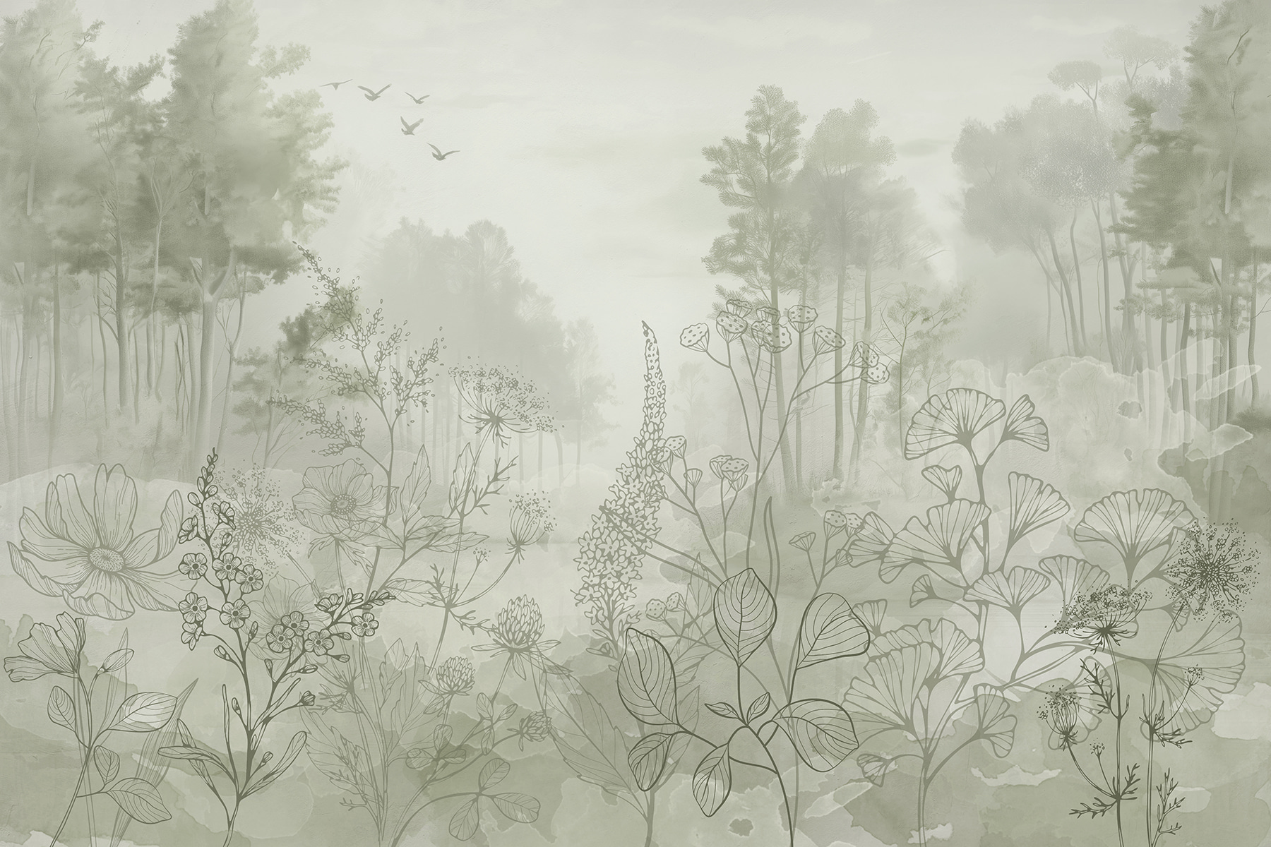Transform any room into a dreamy escape with this foggy forest mural. Imagine walking into an enchanting wood, where mist dances between towering trees and delicate birds take flight. It’s like stepping into a storybook every time you glance at your wall. The soft hues bring a sense of calm, perfect for spaces where relaxation and tranquility matter most. Just picture sipping your morning coffee, lost in thought, while the gentle forest vibes wrap around you. It’s nature’s magic, right at home—no hiking boots required!