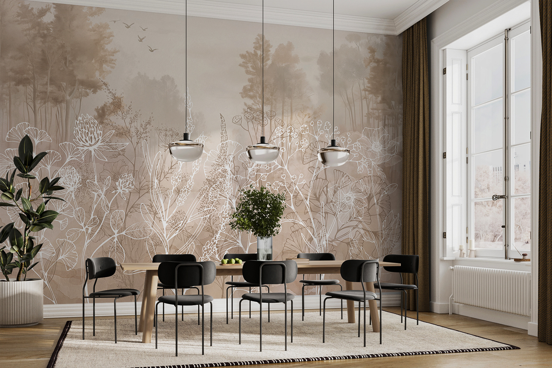 Transform any space into a serene retreat with this lovely wall mural of plants and trees. Imagine waking up to a soft, dreamy forest scene, where delicate florals dance beside shadowy trees. It’s like having nature right in your living room, minus the bugs and muddy shoes. Perfect for those who crave a bit of the outdoors, this mural whispers calm vibes, inviting moments of daydreaming or cozy reading. Just picture sinking into your favorite chair, tea in hand, as the gentle hues and intricate details create a peaceful escape. Add a splash of nature’s charm that feels both fresh and familiar.