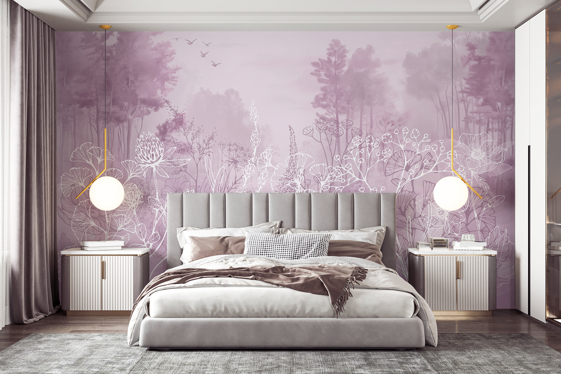 Transform your space into a serene escape with this stunning wall mural, “Wall Murals Drawing of a Forest.” Imagine stepping into a dreamy forest where soft lilac hues dance with delicate floral sketches. It’s like having a gentle mist wrap around you every time you walk into the room. The design’s whimsy invites daydreams about forest adventures or cozy mornings with a cup of tea. Seriously, can you picture curling up on the couch, lost in a book while surrounded by this peaceful beauty? Nature lovers will find joy in every glance. Perfect for adding a touch of calm to any space!