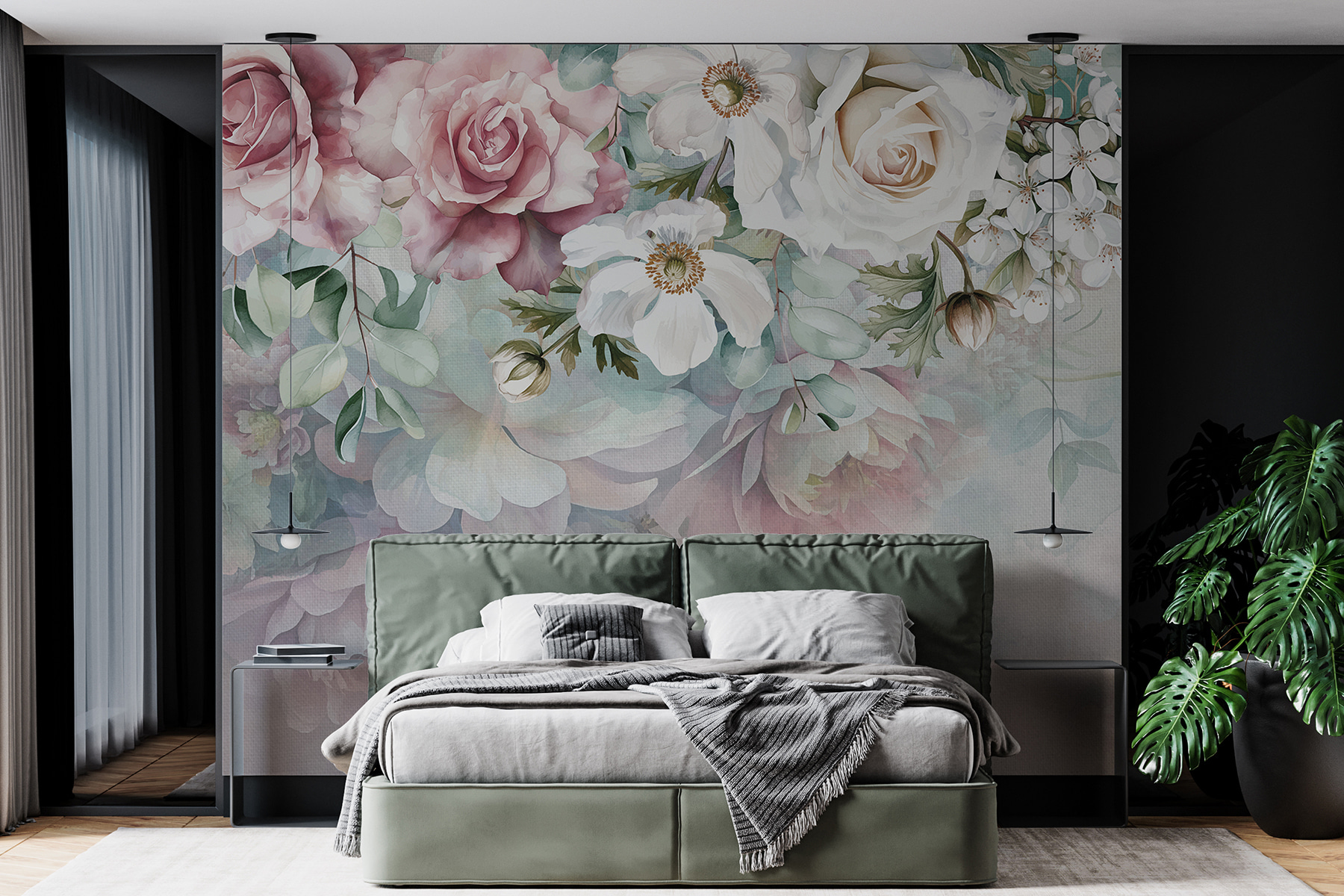 Transform any room with this stunning wall mural of delicate flowers. Picture this: you walk into your living space, and boom—these soft pink roses and wispy white blooms are there to greet you like an old friend. It’s like bringing a garden indoors, but without the pesky pollen.