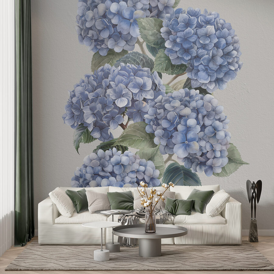 Transform any room with this stunning wall mural featuring delicate blue hydrangeas in full bloom. It’s like having a breath of fresh air right in your home. Imagine walking in and instantly feeling that serene garden vibe, even if it’s just a cozy apartment. The soft hues and gentle details invite thoughts of spring days, warm sunshine, and maybe even a picnic. The flowers can add a bit of life to a dull wall, making it the perfect backdrop for cozy chats or quiet moments with a book. Who wouldn’t want an extra splash of nature indoors?