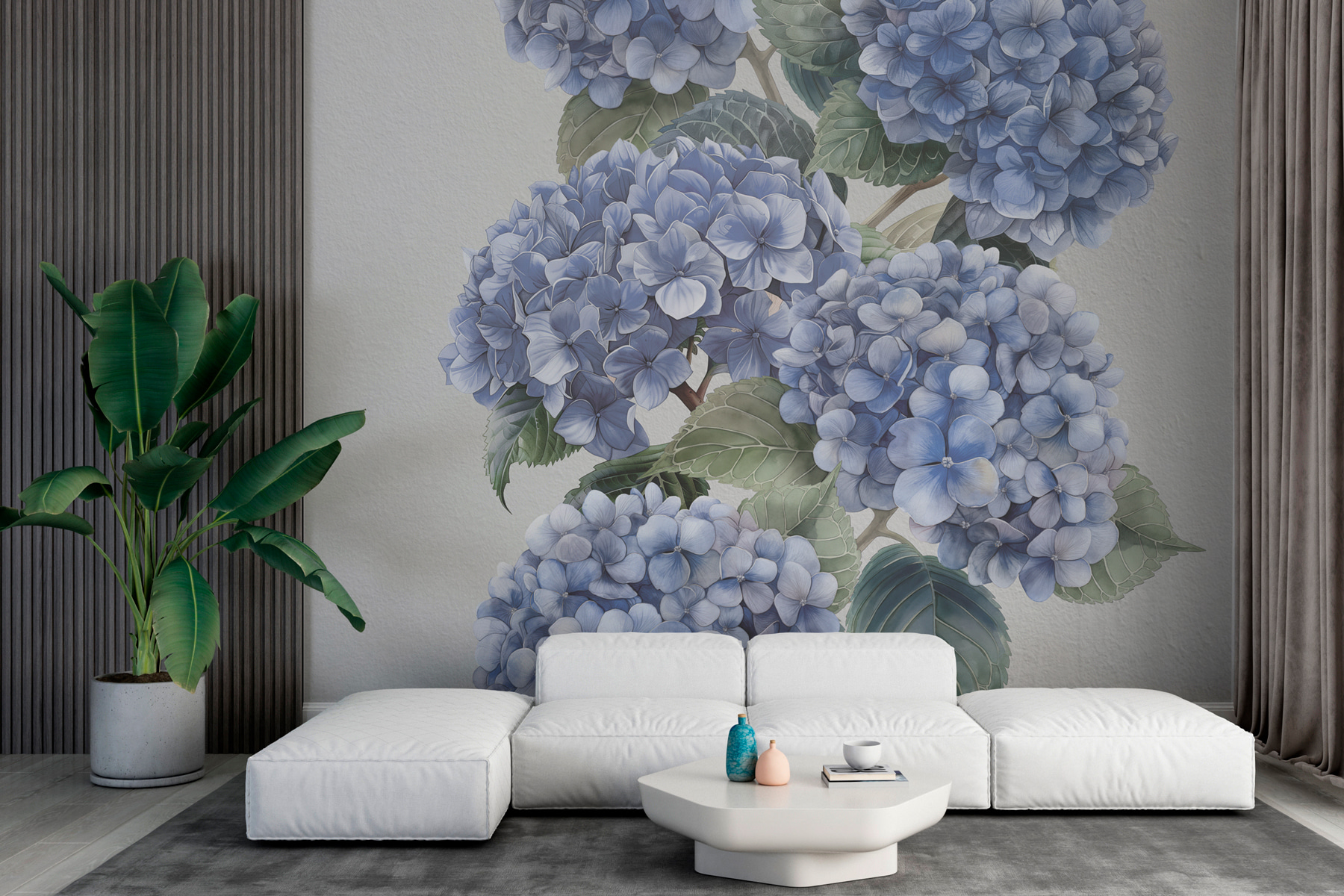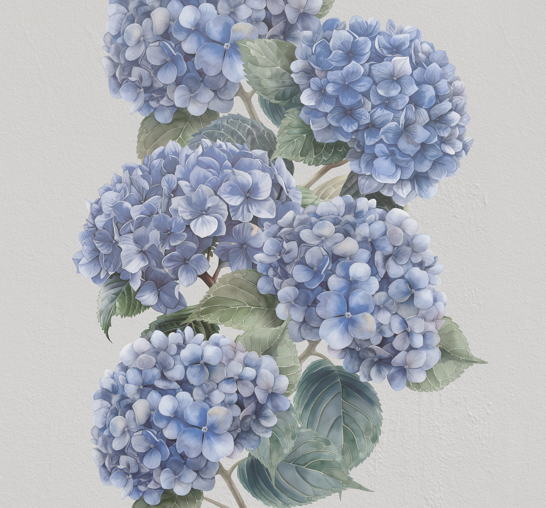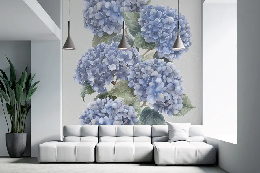 Transform any room with this stunning wall mural featuring delicate blue hydrangeas in full bloom. It’s like having a breath of fresh air right in your home. Imagine walking in and instantly feeling that serene garden vibe, even if it’s just a cozy apartment. The soft hues and gentle details invite thoughts of spring days, warm sunshine, and maybe even a picnic. The flowers can add a bit of life to a dull wall, making it the perfect backdrop for cozy chats or quiet moments with a book. Who wouldn’t want an extra splash of nature indoors?