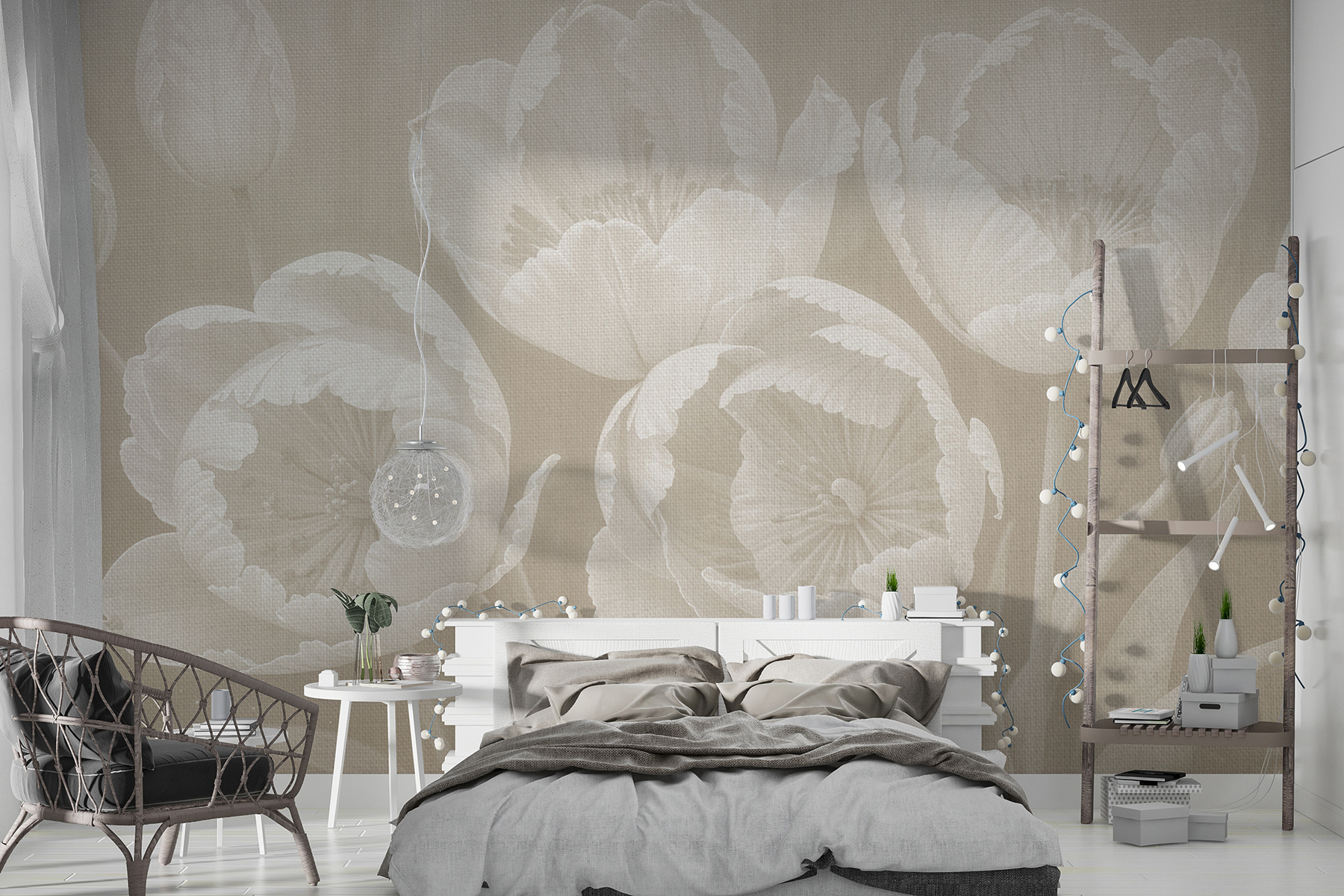 Transform your space into a serene escape with the “Elegant Floral Display in Sepia” mural. Picture this: a cozy room, warm light streaming in, and these delicate flowers unfolding softly on your walls. Their muted tones add a touch of sophistication without shouting for attention—perfect for those quiet moments with a good book (or just a cup of coffee… no judgment here!). Imagine hosting friends, and the conversation flows—everyone can’t help but admire the subtle beauty behind you. It’s like nature invited itself in, whispering sweet nothings of calm and elegance. Perfect for a living room, bedroom, or even a little nook where inspiration blooms!