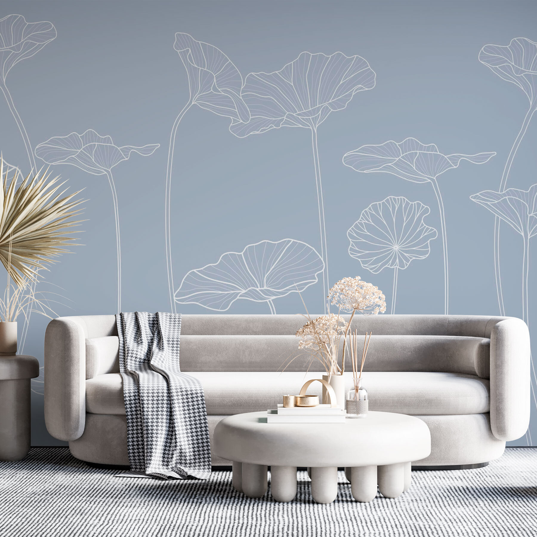 Transform your space with this delightful wall mural featuring line-drawn flowers. It’s like bringing a garden indoors, minus the pollen and outdoor upkeep. The soft blue background is calming, perfect for a cozy nook or a lively living room. Imagine curling up with a good book, surrounded by these elegant blooms that whisper a bit of nature into your home. Each gentle line seems to sway, inviting a sense of peace. This mural adds character without overwhelming, turning any wall into a conversation starter. Nature never looked so stylish!