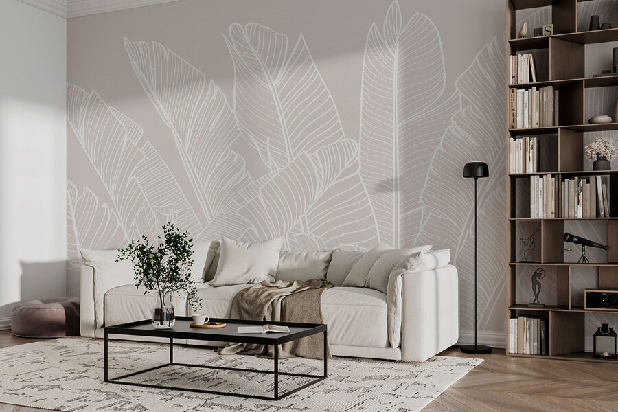 Transform your space with the “Monochrome Elegance of Banana Leaves” wall mural. This stunning design captures the graceful curves of banana leaves in a chic, minimalist style that feels both modern and timeless. Imagine greeting guests in a room that feels like a tropical escape—without the humidity! The delicate white outlines pop against a soft backdrop, inviting tranquility while subtly elevating your decor. Perfect for creating that serene reading nook or a lively dining area; it’s like having nature embrace your walls. Plus, who doesn’t love a touch of nature indoors?