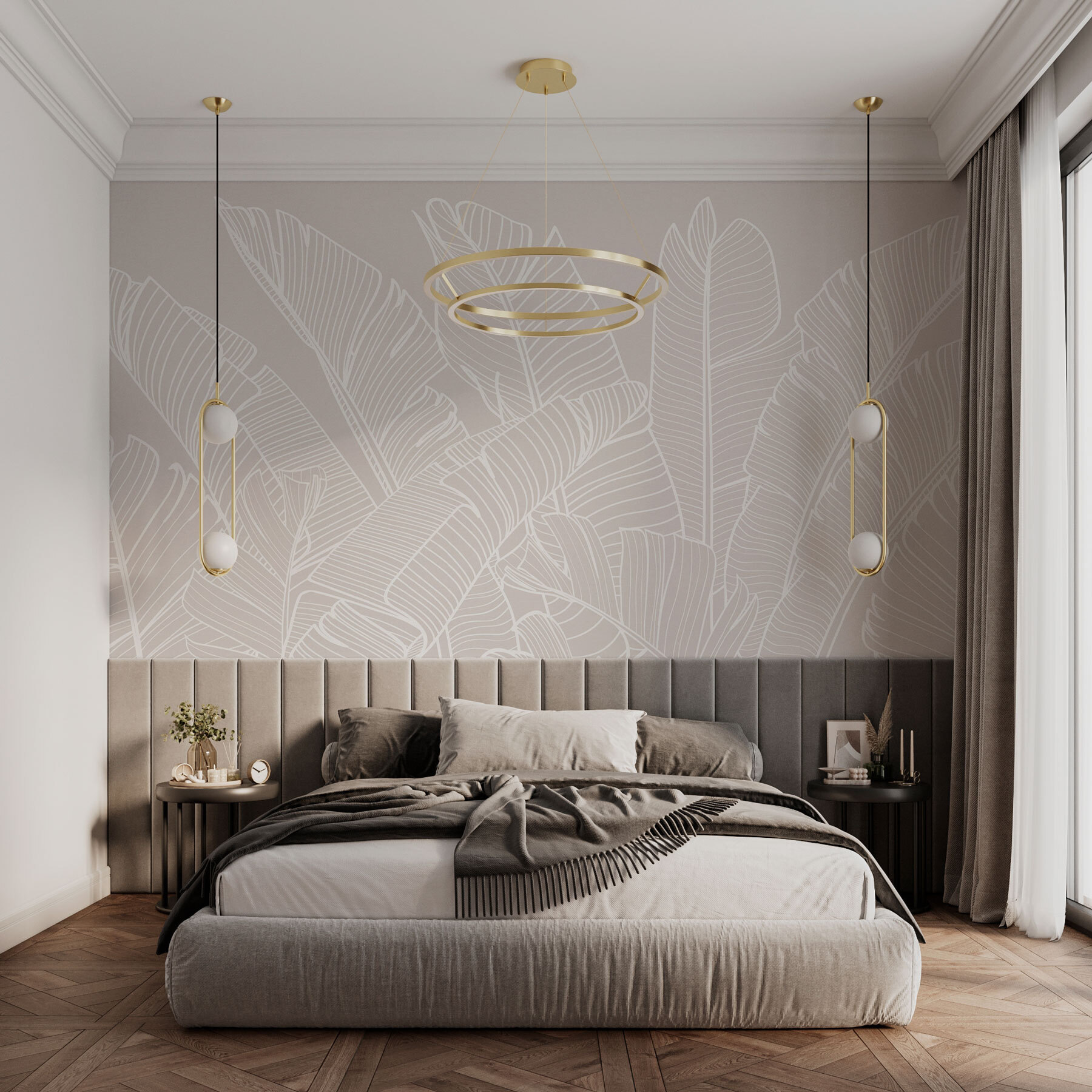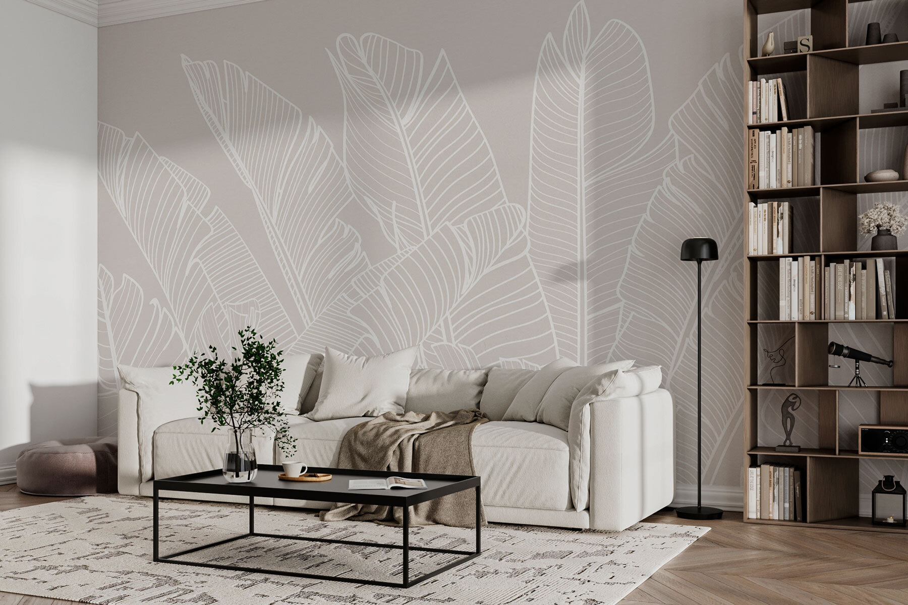Transform your space with the “Monochrome Elegance of Banana Leaves” wall mural. This stunning design captures the graceful curves of banana leaves in a chic, minimalist style that feels both modern and timeless. Imagine greeting guests in a room that feels like a tropical escape—without the humidity! The delicate white outlines pop against a soft backdrop, inviting tranquility while subtly elevating your decor. Perfect for creating that serene reading nook or a lively dining area; it’s like having nature embrace your walls. Plus, who doesn’t love a touch of nature indoors?