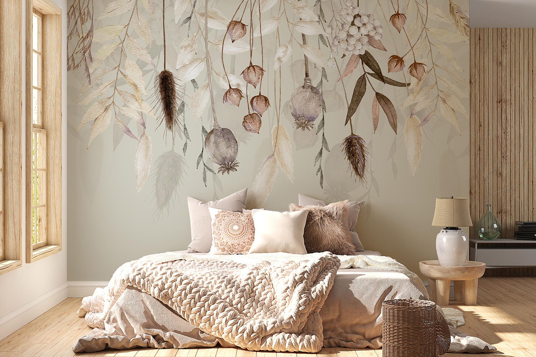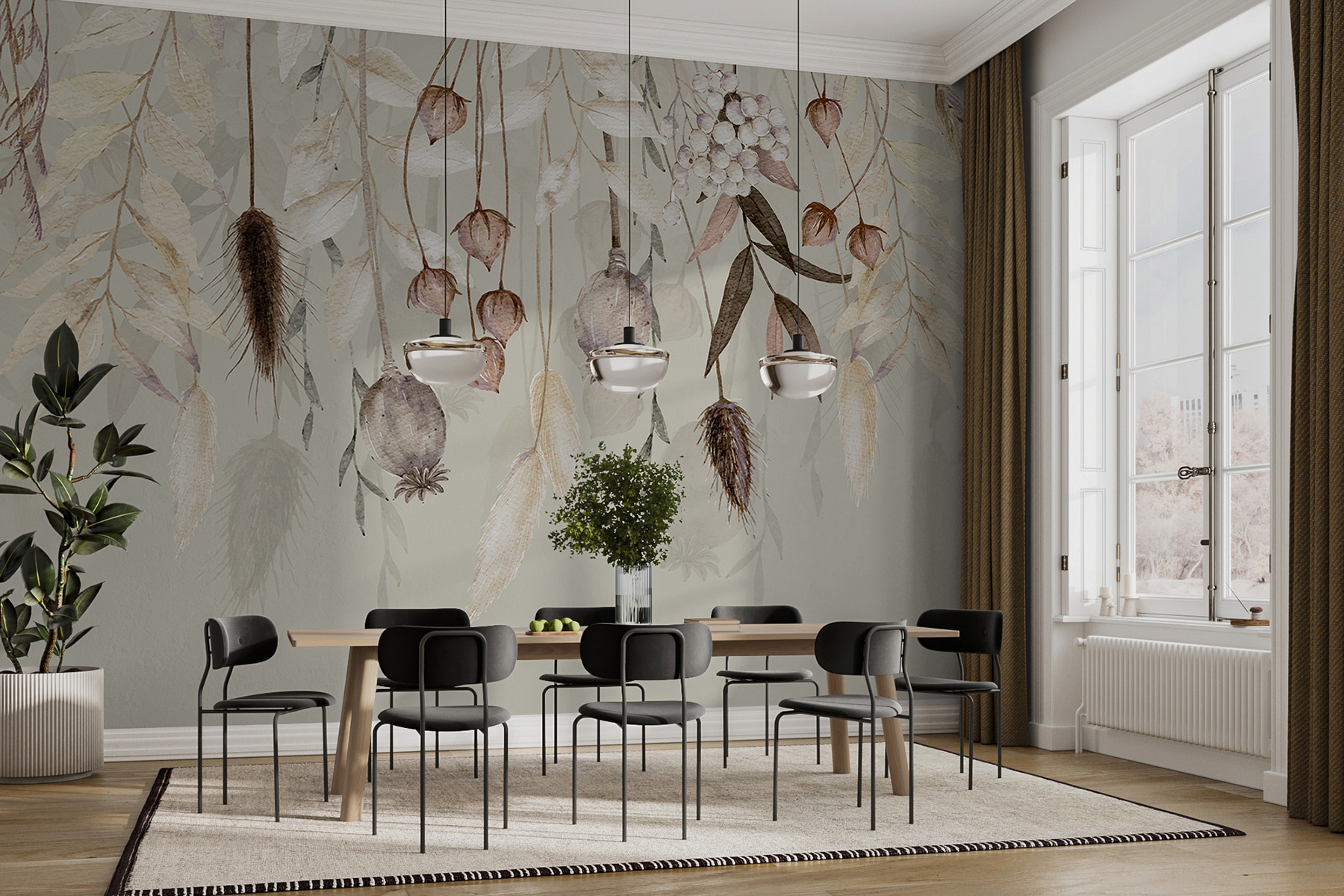 Transform your space with “Autumn Hues in Delicate Balance.” This mural brings a cozy, earthy vibe, making it perfect for those who love to cuddle up with a good book. Picture it: sippin’ tea, surrounded by soft colors and nature-inspired designs that remind you of golden autumn days. The gentle blend of leaves and unique blooms creates a serene backdrop that feels both calming and inviting. It’s like having a piece of nature right on your wall—no messy cleanup required! This stunning mural is sure to spark joy and calm every time you walk by.
