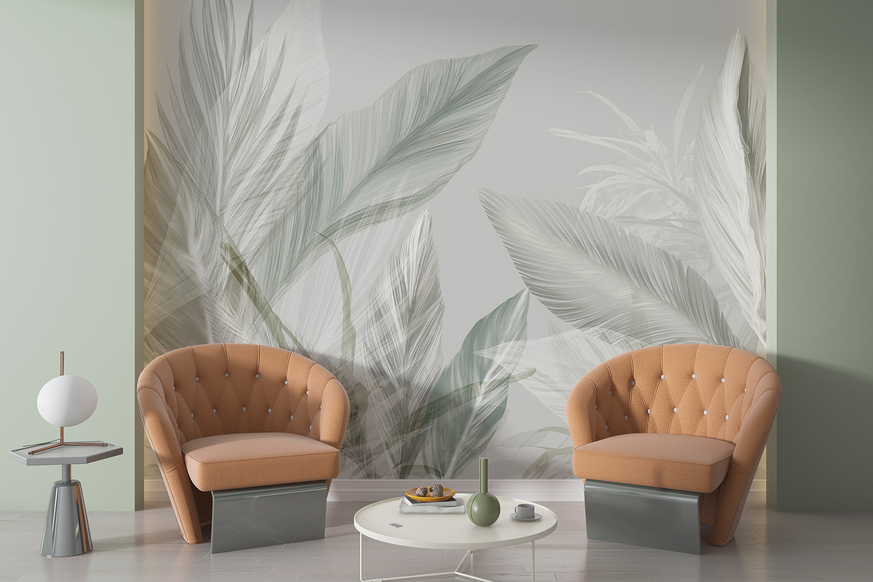 Transform any space with the dreamy vibes of “Ethereal Feathers in Soft Hues.” This mural wraps your walls in a whisper of nature, where delicate feathers in muted greens and soft creams dance across a soothing backdrop. Imagine stepping into your room and feeling a gentle breeze—okay, maybe not a real breeze, but you get the idea. It’s like having a calming piece of the outdoors inside, making even the tiniest apartment feel like a serene oasis. Perfect for cozy corners or those walls that just need a little extra flair. Who knew feathers could be so chic? Stop and stare—it’s that good.