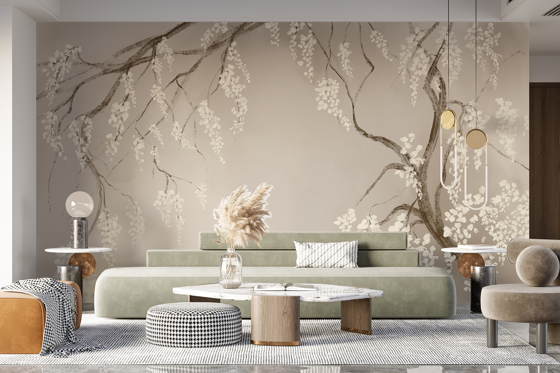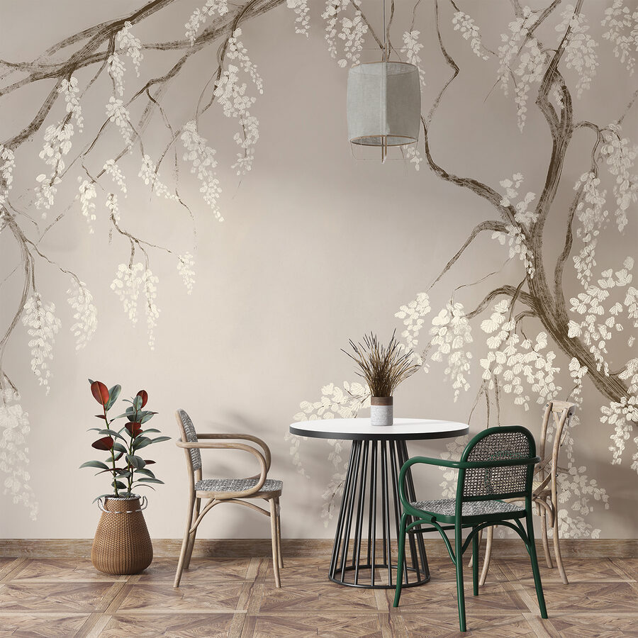 Transform any space with this enchanting wall mural featuring delicate tree branches adorned with white flowers. It’s like bringing a serene garden indoors, minus the pollen sneezing! Imagine sipping your morning coffee under this calming scene—who wouldn’t feel a bit more inspired? The soft, earthy tones create an inviting atmosphere, perfect for cozy gatherings or lazy afternoons. It’s versatile enough for a chic living room or a tranquil bedroom retreat. Perfect harmony? Yep, this mural’s got it. Nature might not have a home on your wall, but now it can!