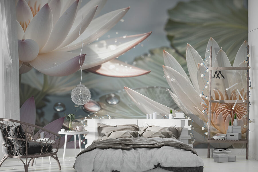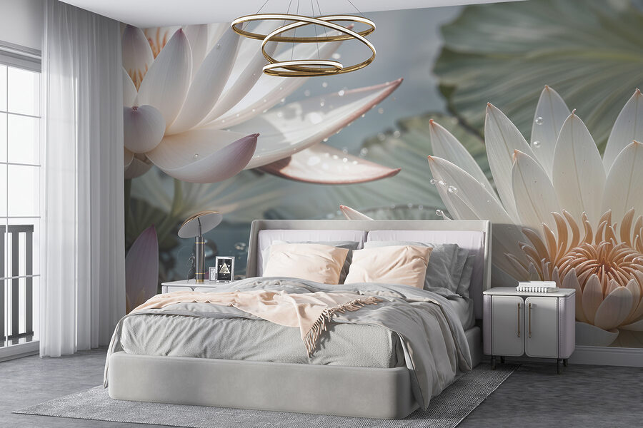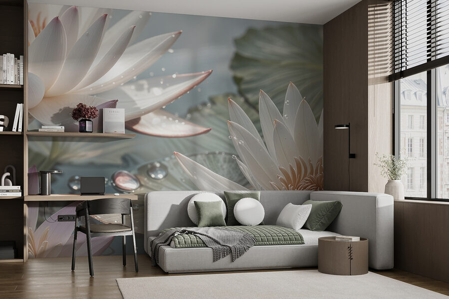 Transform your space with this stunning mural, “Lotus Blooms Gleaming with Morning Dew.” Imagine stepping into a serene oasis each day, where delicate lotus flowers float gracefully on water, kissed by soft morning dew. It’s like having a piece of nature right in your living room! The subtle hues and dreamy details create an inviting atmosphere that whispers calm vibes—perfect for those cozy nights with a book or even a little meditation corner. Just picture the compliments from friends as they wash over the mural, and who doesn’t love a bit of nature to brighten their day? It’s a visual treat that awakens the senses—almost like the flowers are encouraging you to take a deep breath and enjoy the moment. Perfect for anyone who wants a touch of tranquility in their decor!