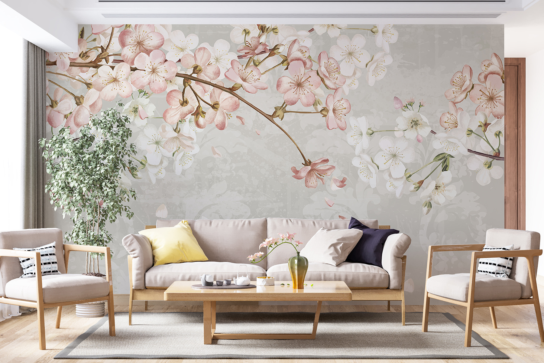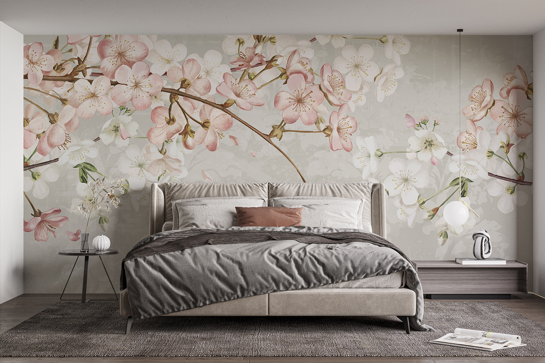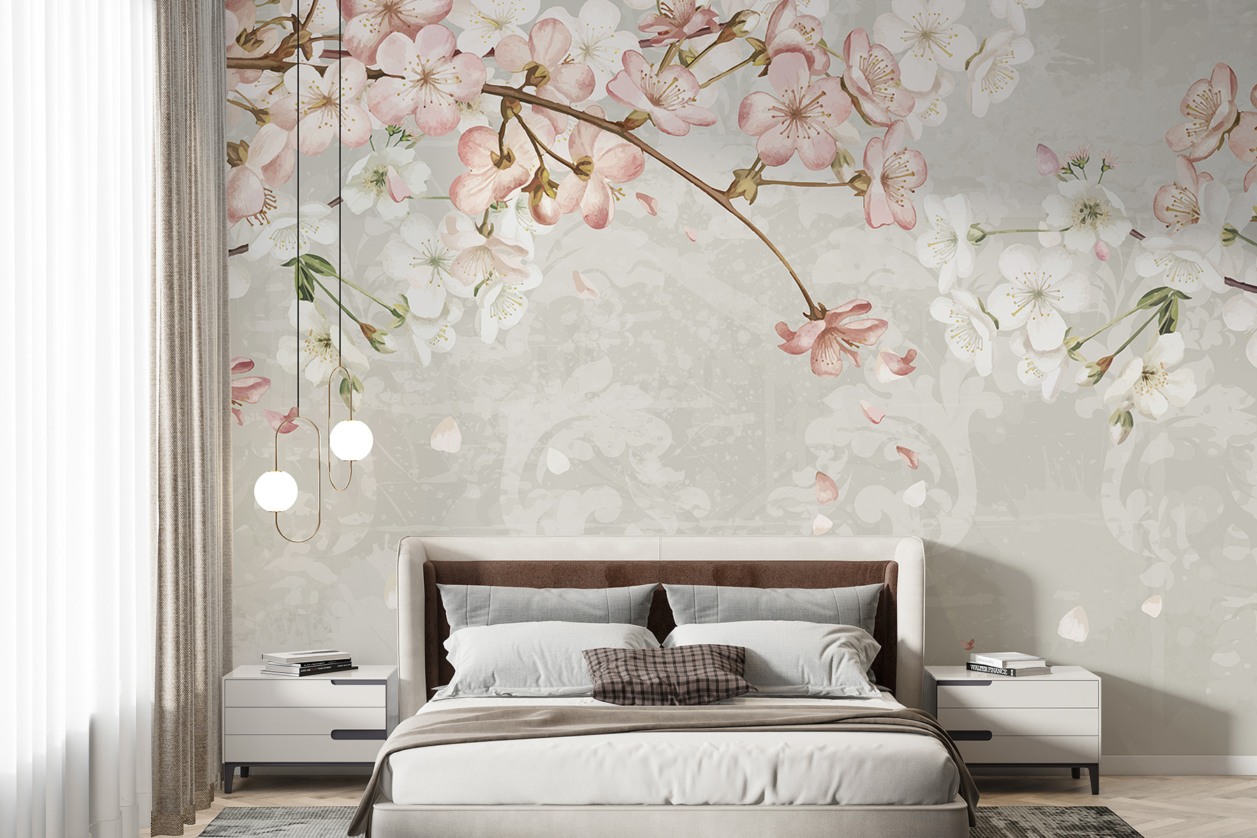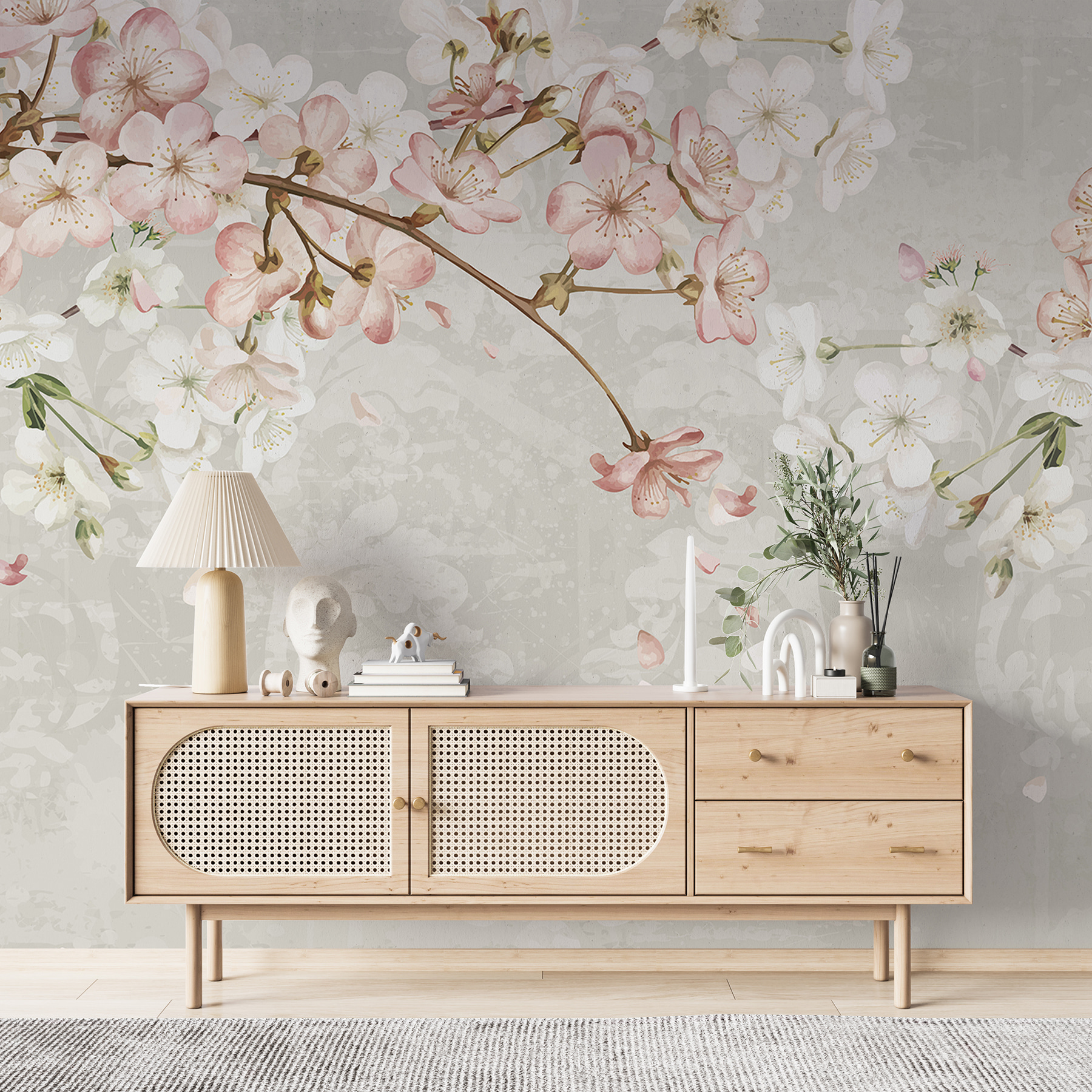 Imagine stepping into a room where spring never really leaves—sounds dreamy, right? This “Spring Blossoms Over Vintage Pattern” mural captures that feeling perfectly. Delicate pink and white flowers dance across a soft, muted backdrop, whispering of sunny days and gentle breezes. It’s like a secret garden that transforms your space into a serene hideaway. Picture sipping tea, surrounded by these blooms, with petals playfully drifting down. Who could resist a little nature-inspired charm, especially when it brings such warmth and cheer? Perfect for any wall, this mural might just inspire a few daydreams of picnics and strolls through cherry orchards.