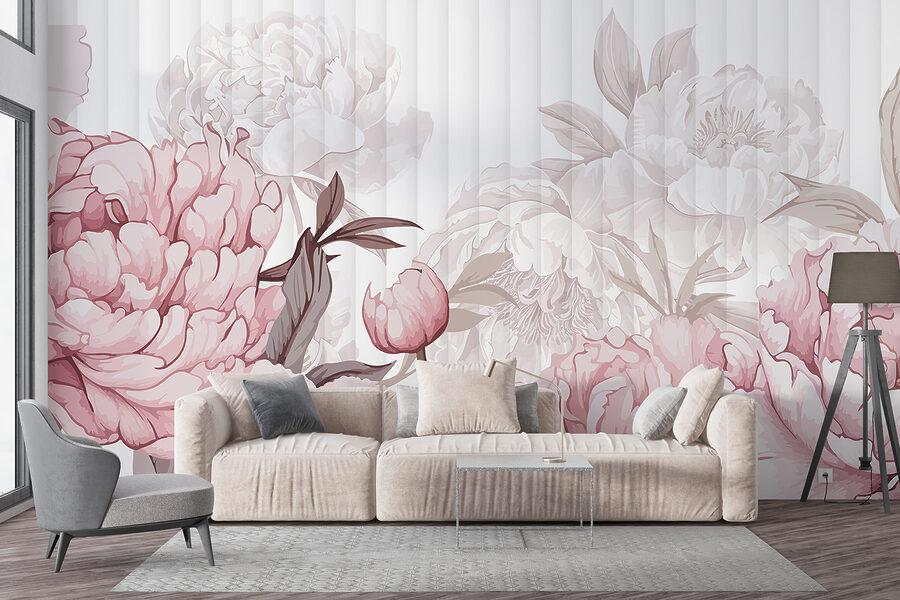 Wall murals Group of white and pink flowers