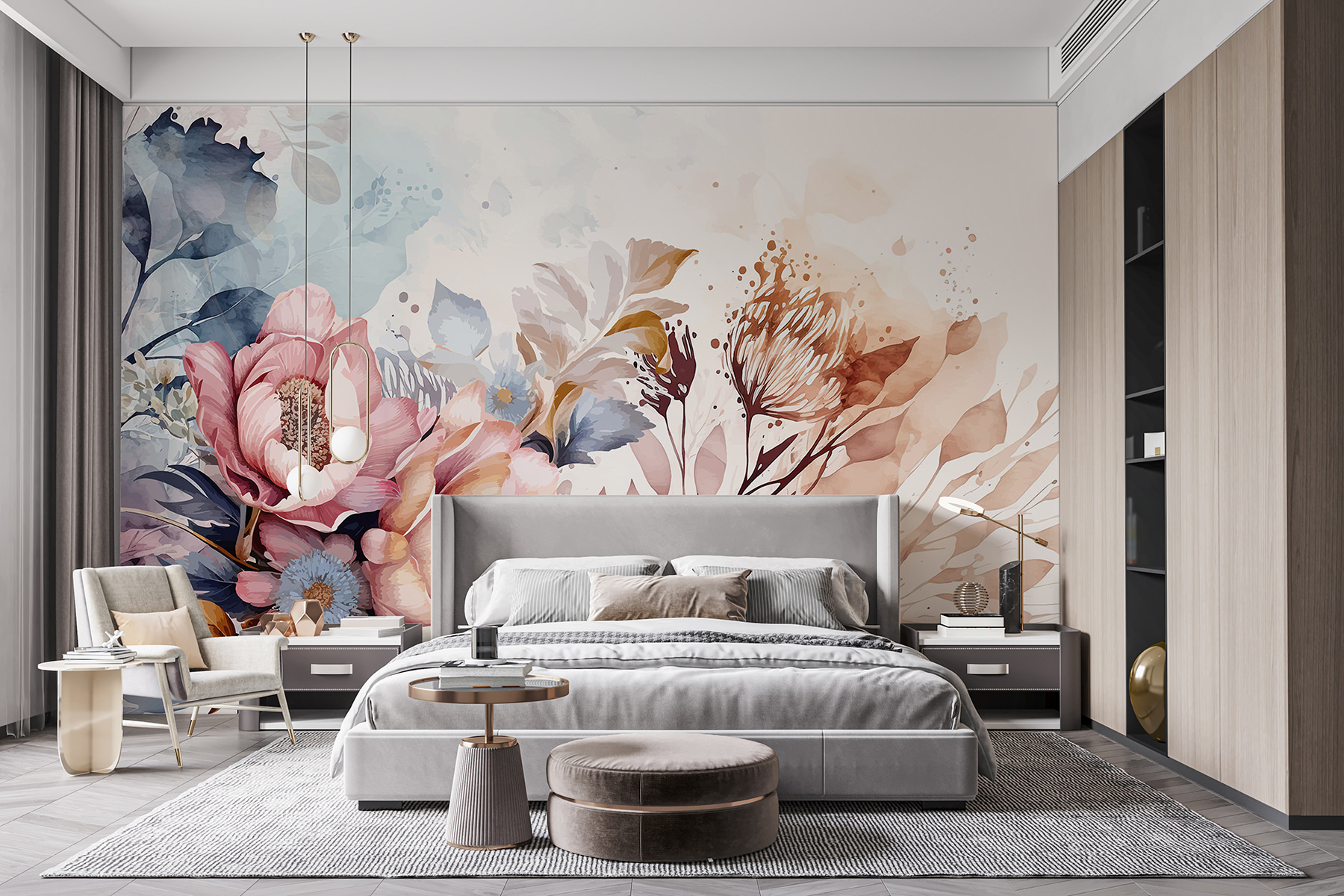 Transform any room into a serene garden with this stunning wall mural of flowers and leaves. Imagine stepping into your space and feeling like you’ve wandered into a peaceful meadow—perfect, right? The soft colors and delicate brushstrokes create a calming vibe that just invites you to relax. It’s like bringing the outside in without all the pollen! Whether it’s the living room, bedroom, or even a cozy reading nook, this mural has a way of making every spot feel a bit more special. Who wouldn’t want to wake up to such beauty? Just think about it: coffee in hand, surrounded by nature’s charm—sounds like a dream come true!