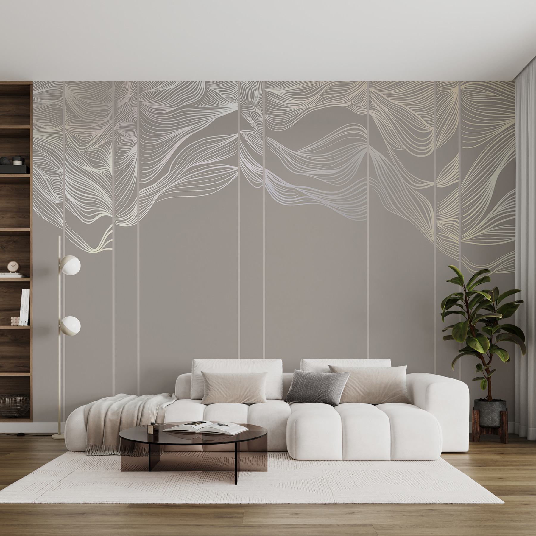 Transform any room into a serene escape with this stunning “Elegant Waves in Monochrome Tones” mural. Imagine waking up to the gentle dance of soft lines and muted shades, creating a calm yet stylish vibe. It’s like bringing the ocean breeze indoors—minus the sand in your toes! These delicate waves wrap around your walls, offering a peaceful backdrop for cozy chats or quiet reading time. Friends will admire the unique touch, and you’ll feel like every day is an art gallery stroll. Dive into elegance and let your walls do the talking!