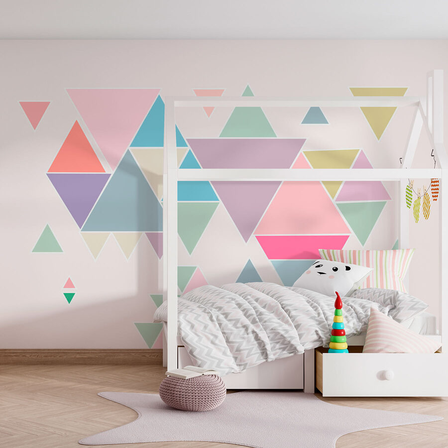 Transform any room into a vibrant retreat with this playful wall mural featuring a colorful range of triangles. It’s like a party for your walls! The soft pastels mingle together, bringing a refreshing touch that makes spaces feel airy and inviting. Picture lounging in a room decorated with this piece, where the colors spark creativity and conversations. It’s a backdrop that dances with light, perfect for brightening up a dull wall or adding flair to a cozy nook. Plus, who doesn’t love triangles? They’re all about fun and style, without the fuss. Enjoy the gentle energy this mural brings—it might just inspire a spontaneous dance break!