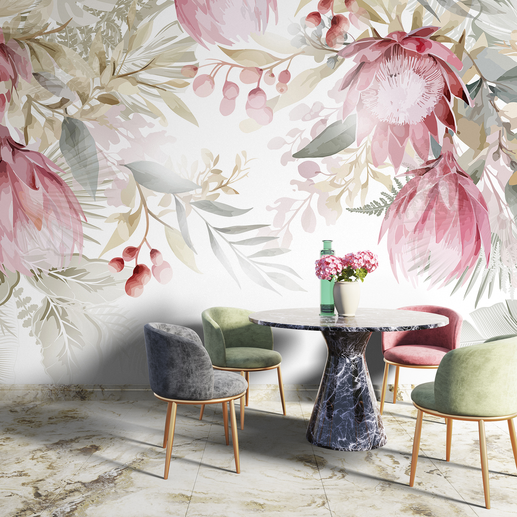 Transform any wall into a cozy garden with the “Whimsical Floral Watercolor Artistry” mural. Imagine stepping into a bright, cheerful room adorned with soft pink blooms and leafy greens—perfect for making a space feel alive and inviting. This isn’t just any wall decoration; it’s like bringing a piece of nature inside without the pesky pollen. Friends will admire it and maybe even question if you planted a secret garden. Ideal for your living room or cozy nook, this mural adds a touch of whimsy and charm, making any day feel like spring.