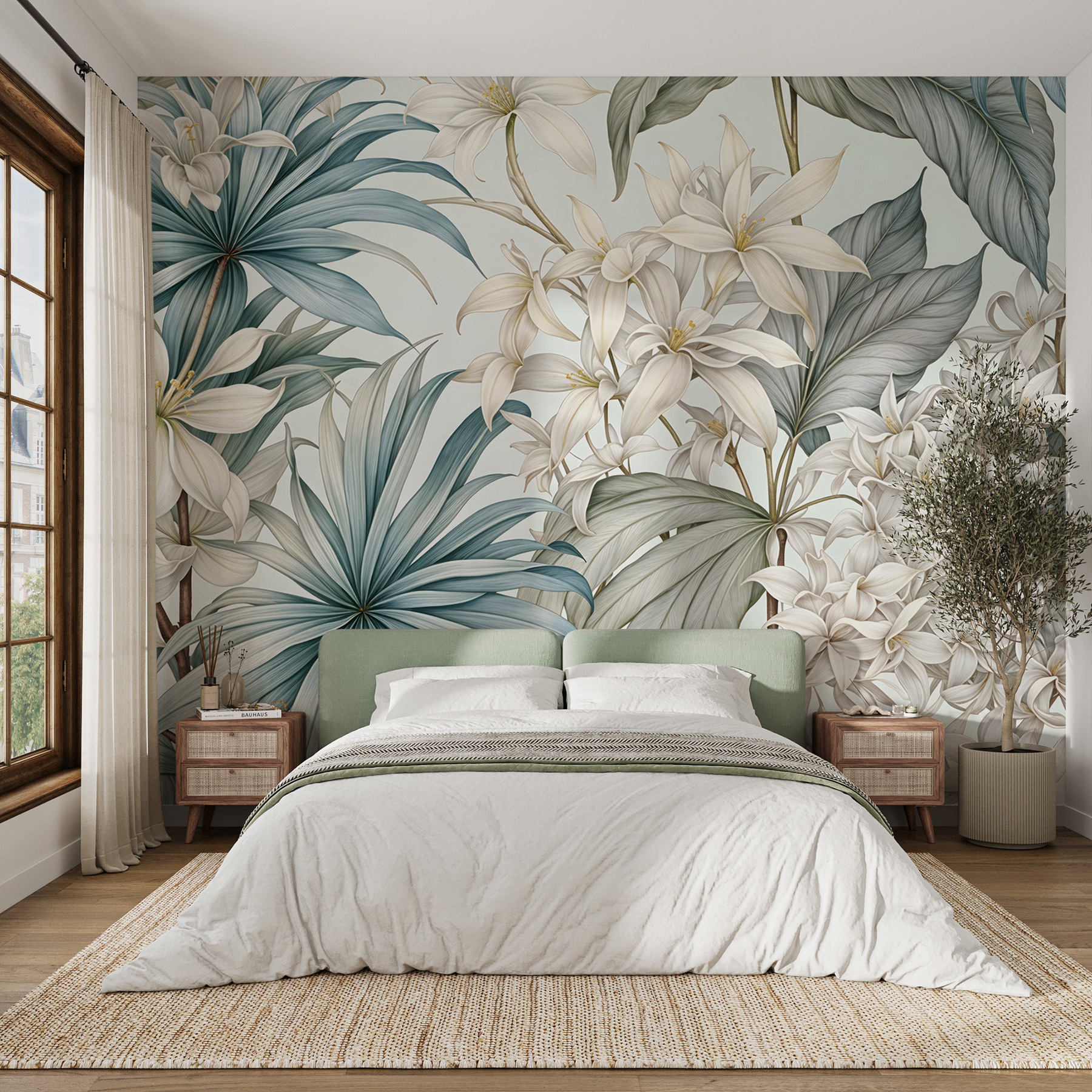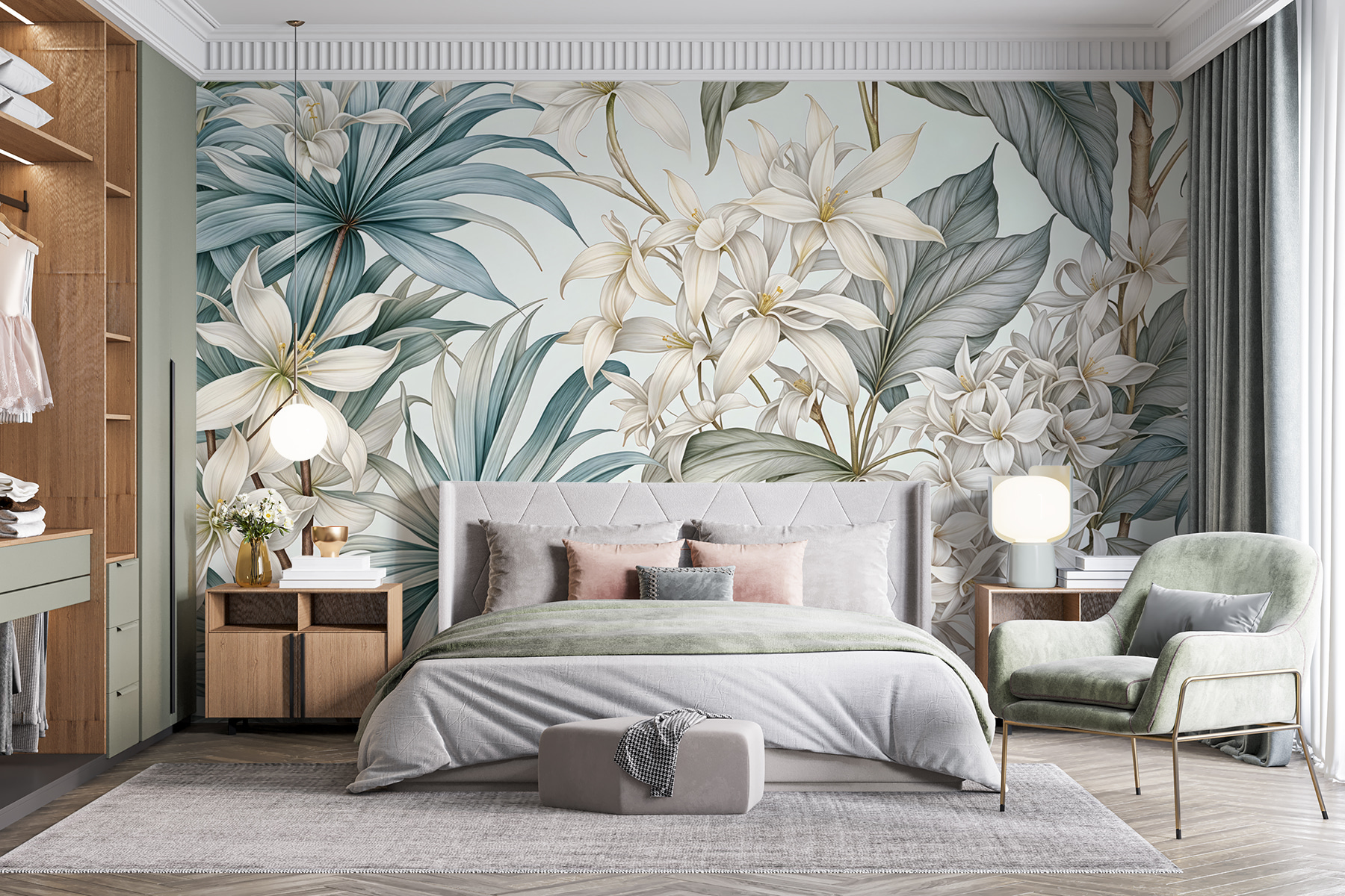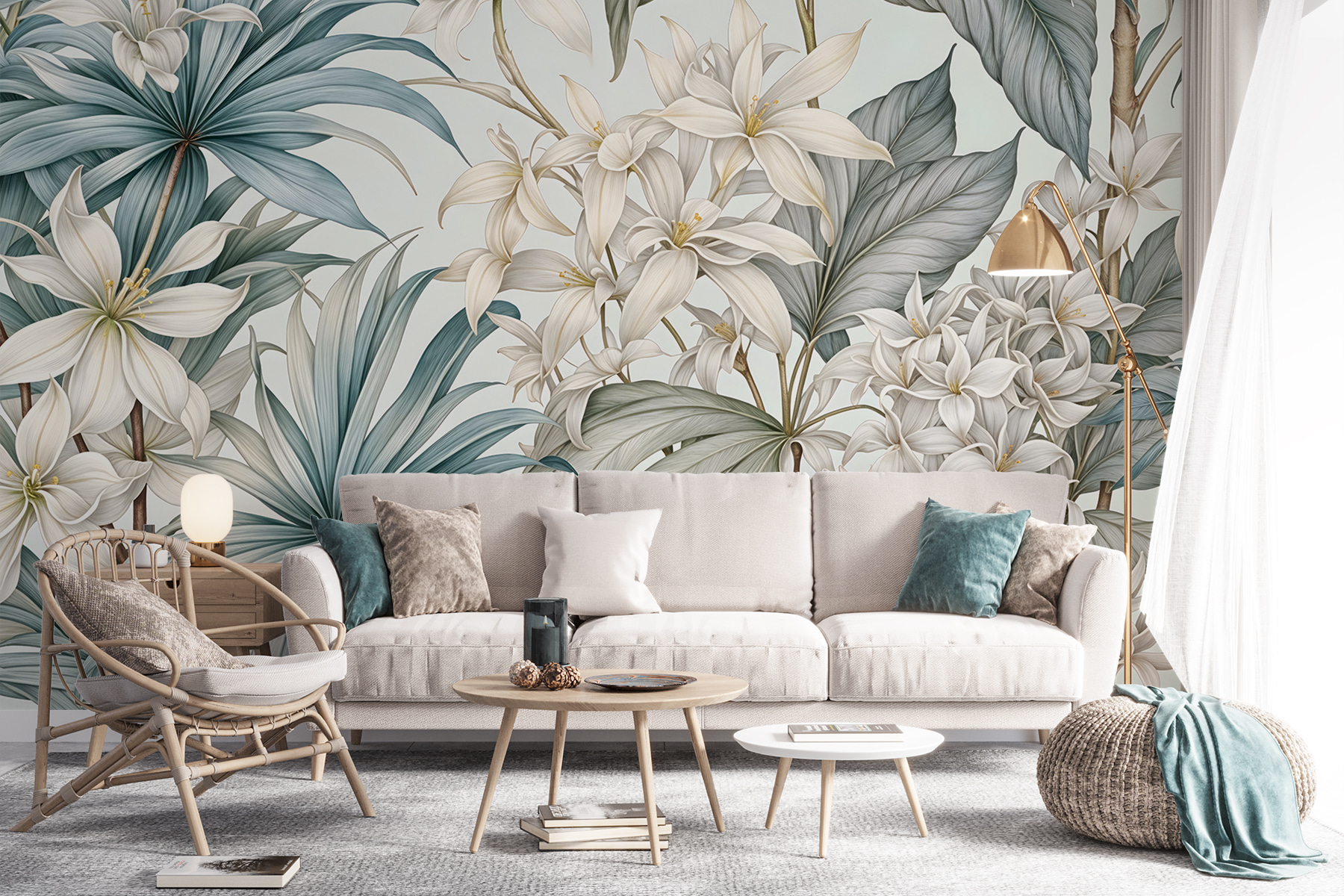 Transform any room into a serene oasis with the “Blossoming Elegance in Pastel Tones” wall mural. This stunning design features delicate flowers and lush leaves in soft pastel shades, inviting a sense of calm. Imagine waking up to this beauty every morning—it’s like a gentle hug for your space. Perfect for a cozy nook or that boring wall begging for attention. Plus, it’s a great conversation starter; guests might just linger a bit longer, admiring those intricate details. Let nature’s charm flow indoors, and watch your space bloom with personality!
