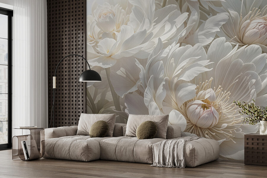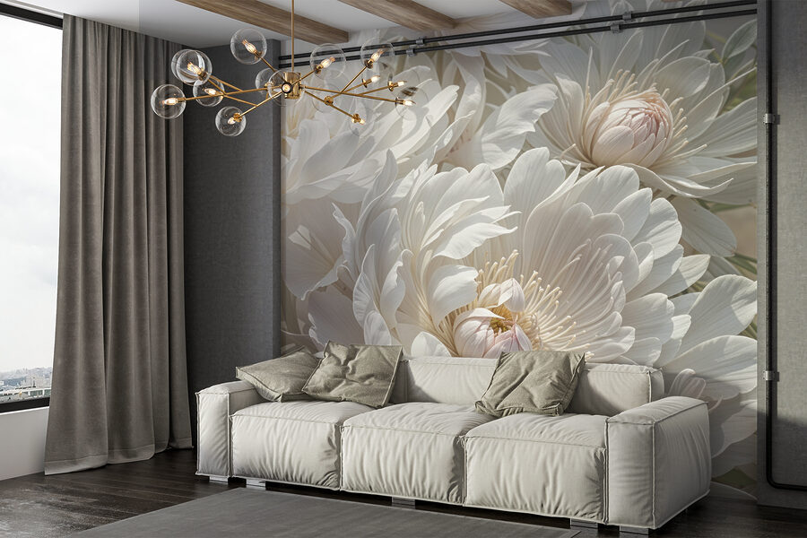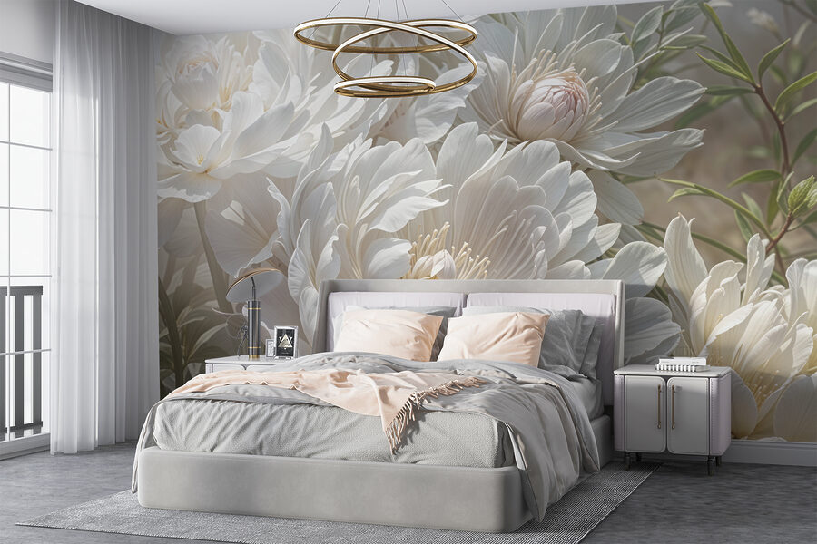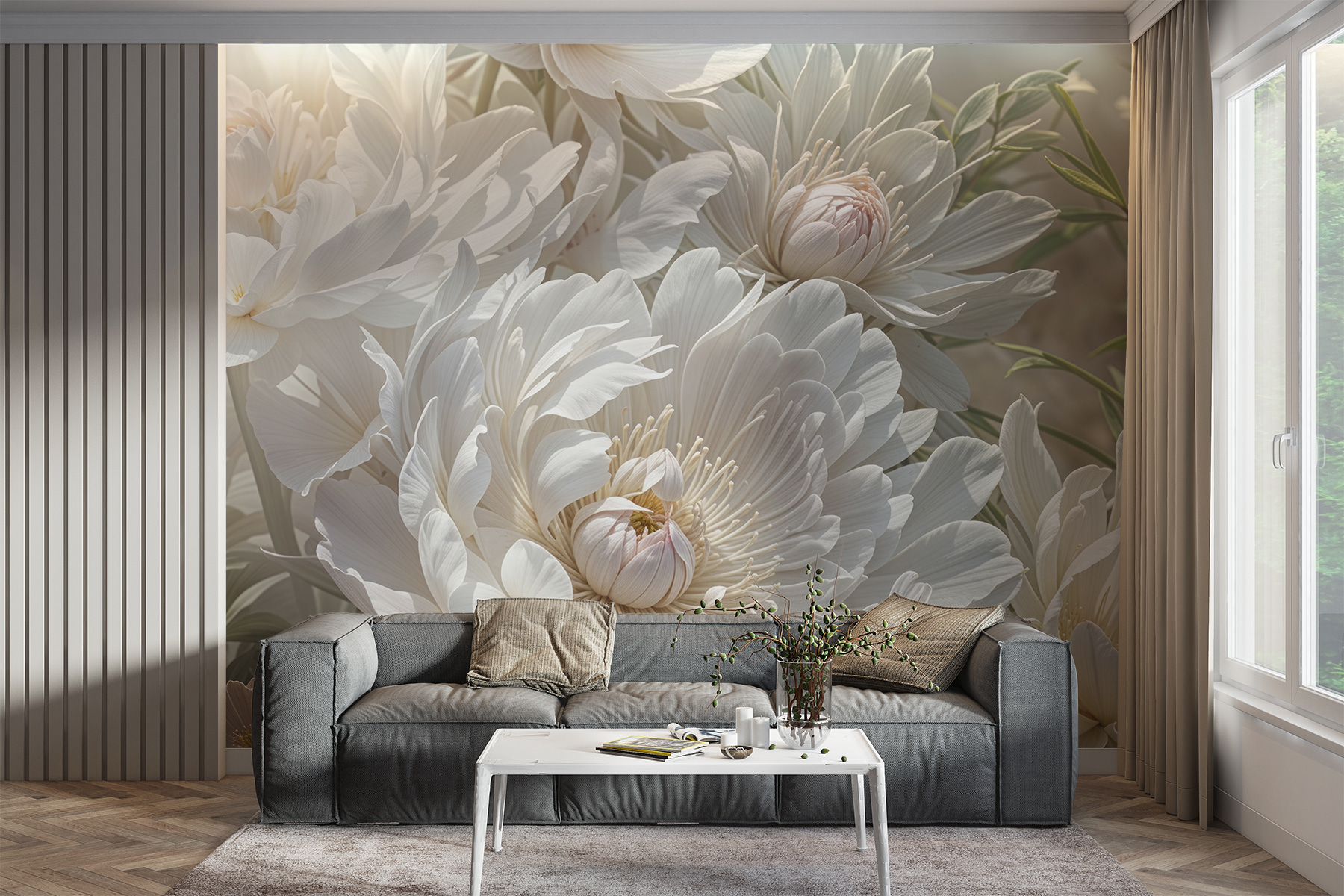 Transform any wall with “Delicate Blossoms in Sunlit Elegance.” Imagine stepping into a serene garden where blooms unfold in soft whispers. These stunning white flowers almost seem to glow, catching sunlight and bringing a breath of fresh air indoors. Perfect for creating that dreamy, tranquil vibe—just think about curling up with a good book while this mural wraps around you, like nature’s warm hug. Whether you’re a flower fanatic or just love beauty, this mural will brighten your space and your mood. It’s not just decor; it’s your daily dose of floral joy!