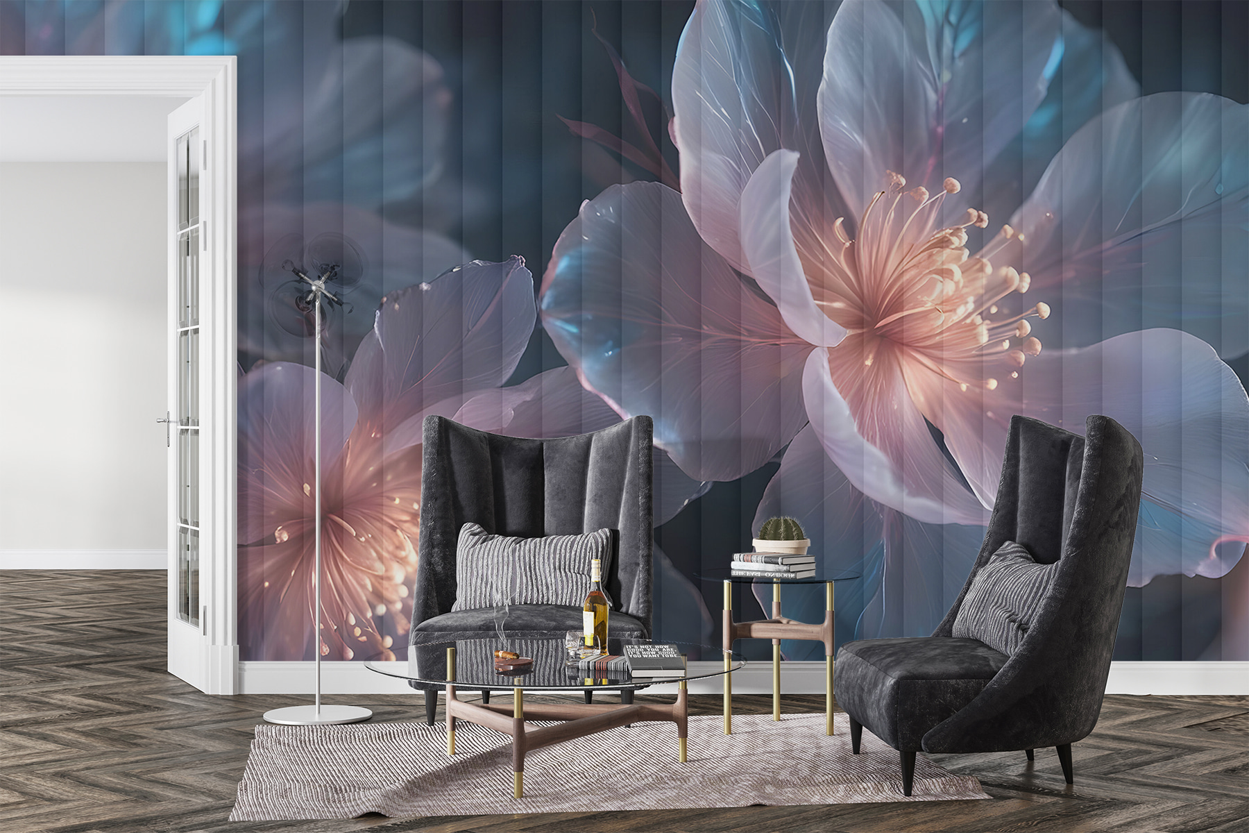 Transform your space with the enchanting “Ethereal Blooms in Luminous Hues” mural. Picture this: waking up to a gentle garden blooming right in your living room. These delicate flowers dance in soft, dreamy colors, adding a touch of whimsy and warmth. It’s like having a mini-vacation every time you step inside. Ideal for that cozy reading nook where you sip coffee and get lost in a book. Friends will peek in and say, wow, where did you find this? It’s not just decor; it tells a lovely story of natural beauty. Just imagine the smiles as conversations blossom around it.