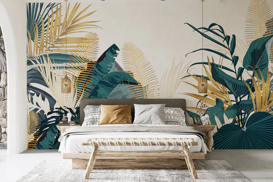 Transform any room into a tropical retreat with this vibrant wall mural featuring a stunning group of tropical plants. Imagine walking into your living space and feeling like you’ve just stepped into a sunny paradise, complete with lush greens and calming yellows. It’s like bringing a slice of nature indoors—without the need for a watering can!