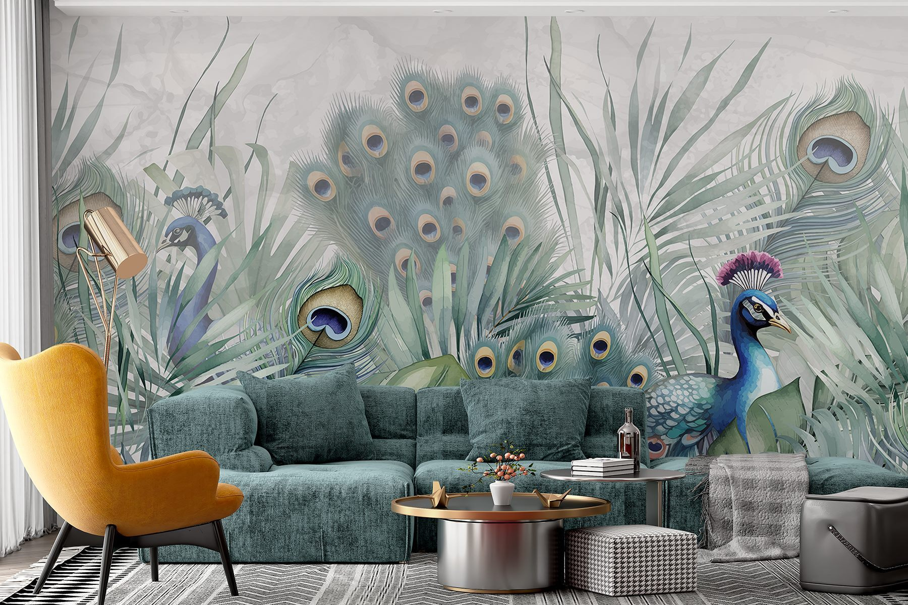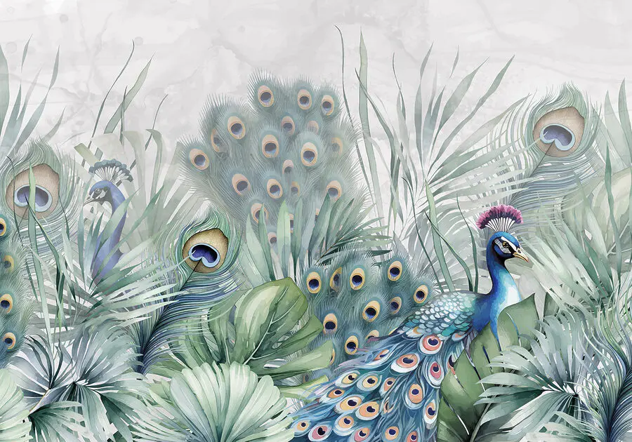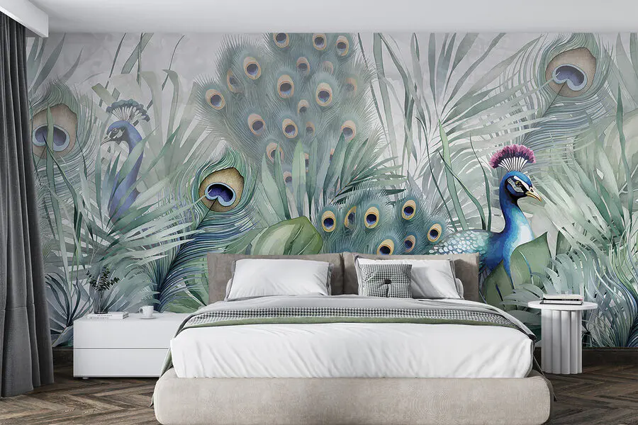 Transform any space into a tropical paradise with this stunning mural featuring peacocks and lush plants. Imagine walking into the room, and bam! Instant luxury vibes, like you’ve stepped into a serene rainforest, minus the humidity. Those peacock feathers pop with colors that practically sing, and the soft greens invite a sense of calm. It’s perfect for creating a cozy reading nook or a chic backdrop for your selfies. Friends will stop by, do a double-take, and ask, “Where’d you find this gem?” Just wait until they see how it brightens up the place. It’s more than decor; it’s a mood lifter, a conversation starter, and a dash of wild