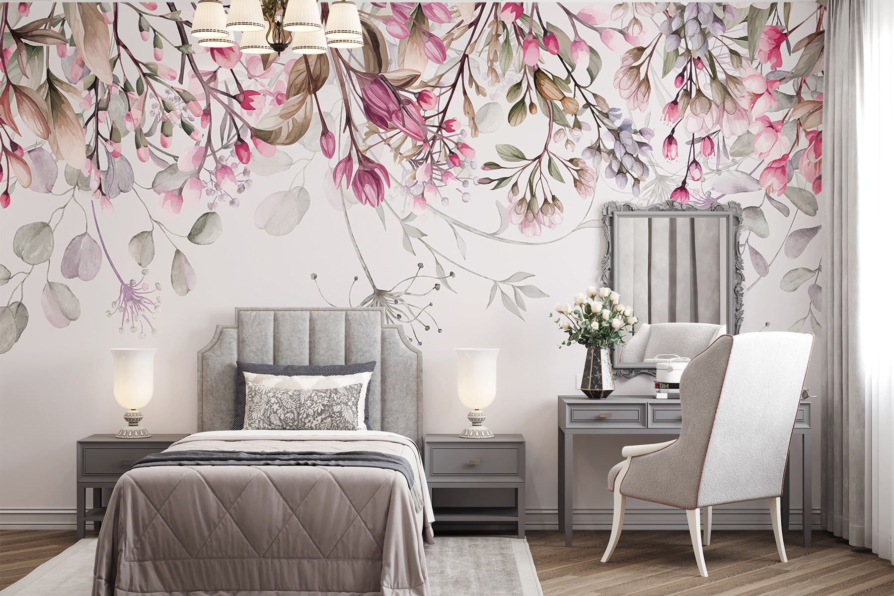 Transform any room into a dreamy sanctuary with this whimsical dance of pastel florals mural. Imagine waking up to a gentle cascade of blossoms that seems to sway and swirl right off the wall. The soft hues create a soothing atmosphere, perfect for those lazy Saturday mornings when coffee tastes just a bit better. Picture friends gathered, admiring your unique flair, or maybe a quiet moment with a book, all while surrounded by nature’s beauty. Plus, it’s a fantastic way to bring a pop of color without overwhelming the space—just the right touch for adding personality to any wall.