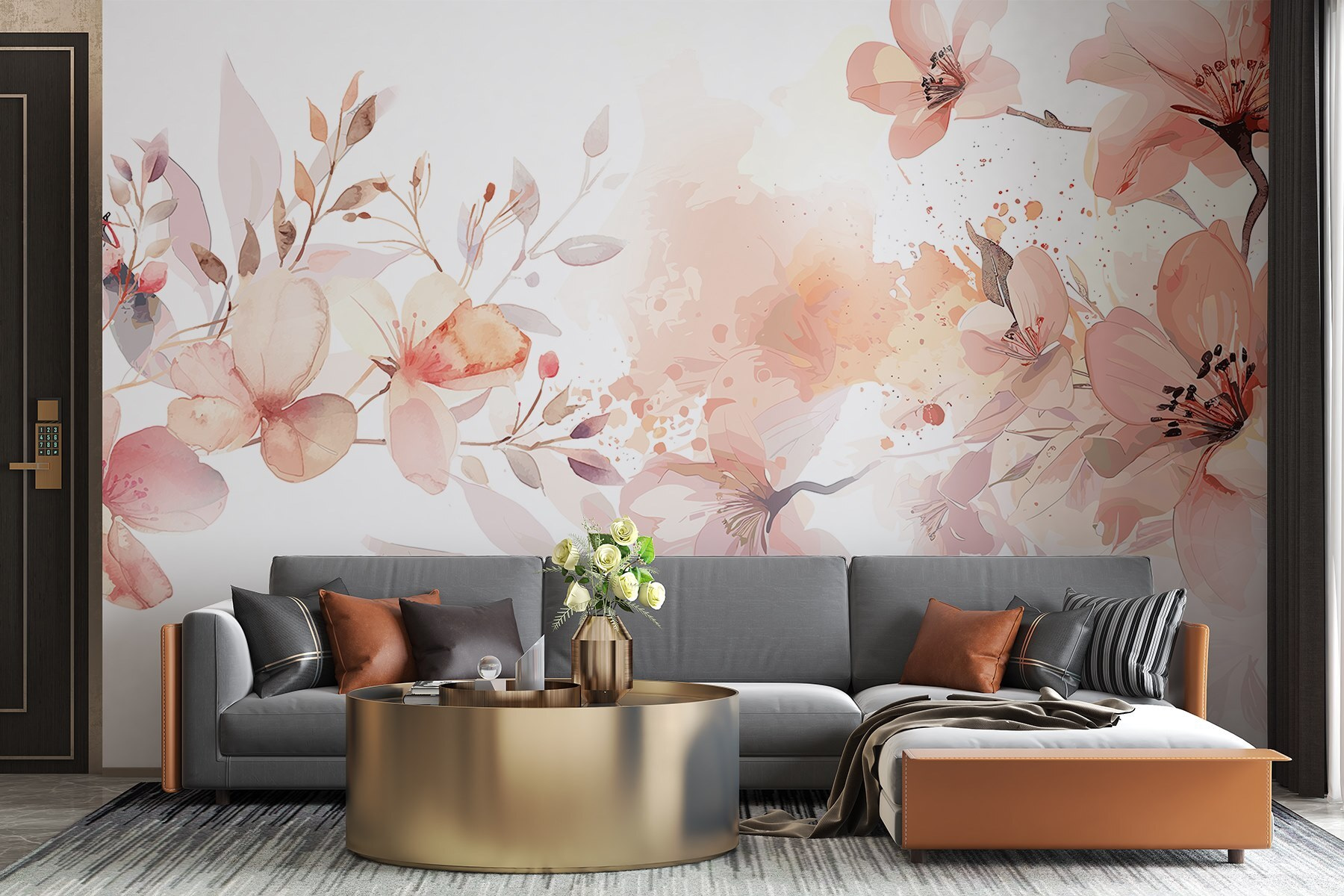 Transform any room into a serene oasis with this stunning mural, featuring delicate flowers and leafy accents. Imagine waking up and being greeted by these soft hues, a gentle reminder of nature’s beauty right in your own space. It’s like having a piece of a Japanese garden at home—without the need for a green thumb. Add it to a living room or bedroom, and watch how it instantly brightens the mood. Whether it’s for a cozy reading corner or a lively gathering spot, this mural invites warmth and joy. Get ready for some serious “oohs” and “aahs” from visitors!