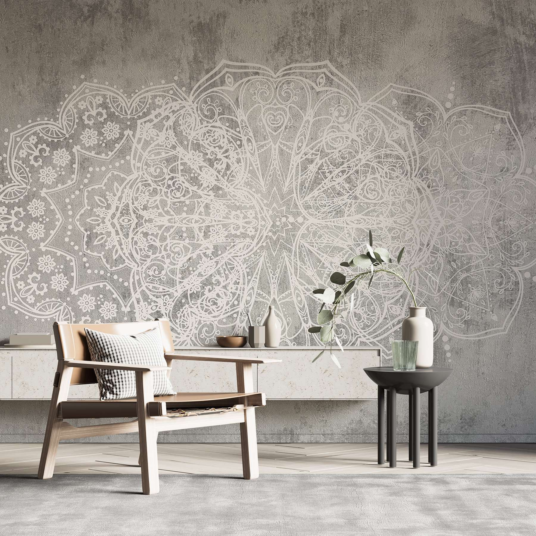 Transform your space with this stunning wall mural, where a delicate white ornate design dances across a soft grey background. It’s like inviting a piece of art right onto your wall—no gallery fee required! Imagine sipping coffee in the morning, glancing up, and feeling that little spark of joy as the intricate patterns catch your eye. It adds a touch of elegance and whimsy, perfect for any room that could use a sprinkle of magic. Friends will comment, and you can secretly bask in the glory of your fabulous taste. Who knew wall decor could do all that?