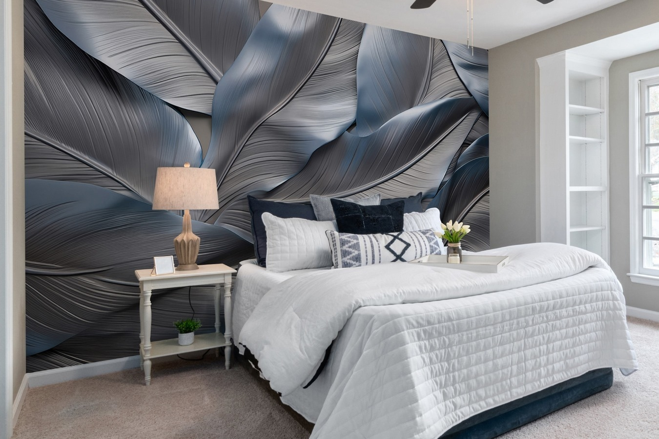 Transform any space into a serene oasis with this wall mural featuring lush leaves in cool tones. Imagine walking into a room that feels like a breezy tropical retreat, where every glance at the subtly swirling leaves makes you feel a bit more relaxed. It’s perfect for creating a calm atmosphere, whether it’s in a cozy reading nook or a client-facing office. Plus, it’s an effortless way to add depth and style to your walls without the hassle of a full renovation. Let the cool hues wash over an otherwise ordinary room, making it a bit more welcoming and, who knows, maybe even sparking some spontaneous daydreams of sandy beaches and palm trees. Because let’s face it, everyone could use a little getaway right at home!