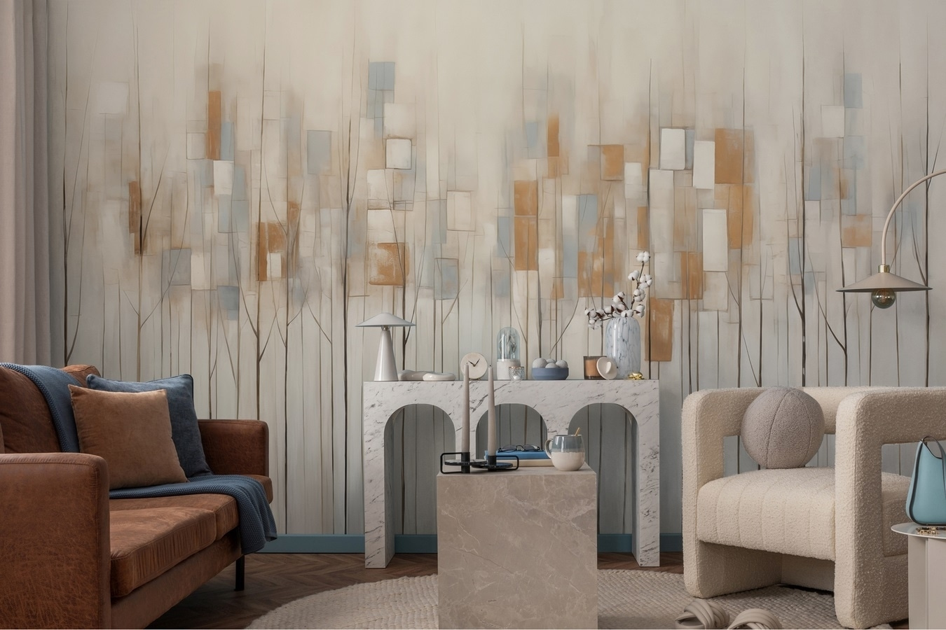 Transform your space with this “Wall Murals Painting of Trees with Squares.” It’s like stepping into a peaceful forest that hugs you with soft, earthy hues of blue and warm brown. Imagine sipping coffee, staring at those abstract trees, and getting lost in their calming vibe. The delicate balance of shapes creates a dance of nature that feels fresh and contemporary—perfect for a living room or cozy reading nook. Friends might just ask if you’ve got a secret garden hidden away. It’s art that inspires a moment of pause, making everyday life feel a bit more special.