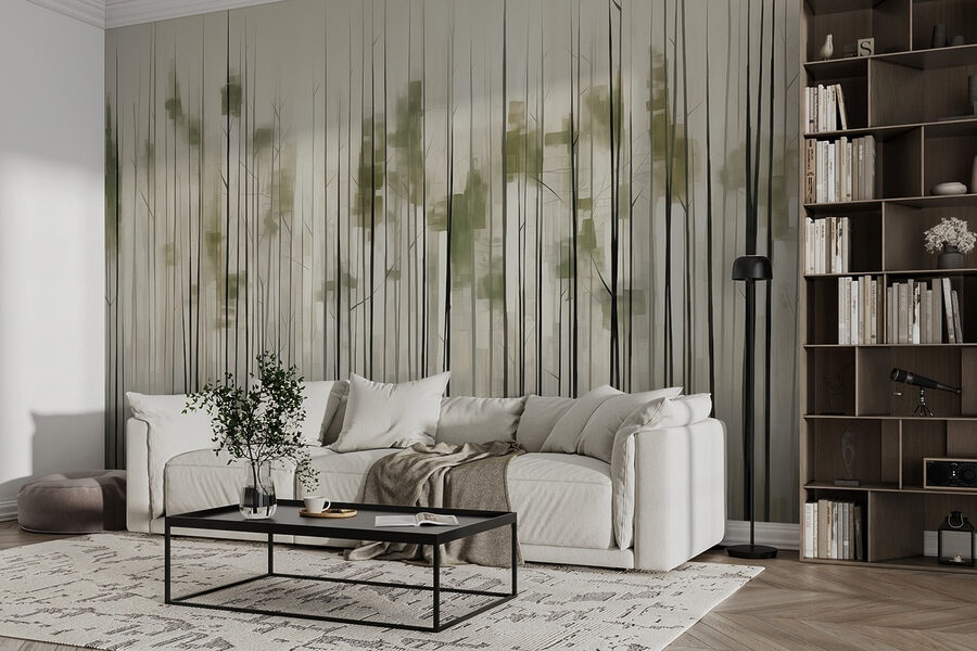 Transform your space into a serene escape with this enchanting mural of trees in a forest. Imagine stepping into a quiet grove, where sunlight dances between the branches and a gentle breeze whispers secrets. This mural brings that calming vibe right to your walls. The soft greens and elegant lines create a dreamy atmosphere, making it perfect for cozying up with a book or sipping tea on lazy afternoons. Plus, it’s like bringing the outdoors inside—minus the bugs! Perfect for anyone who craves a touch of nature’s tranquility in their home.
