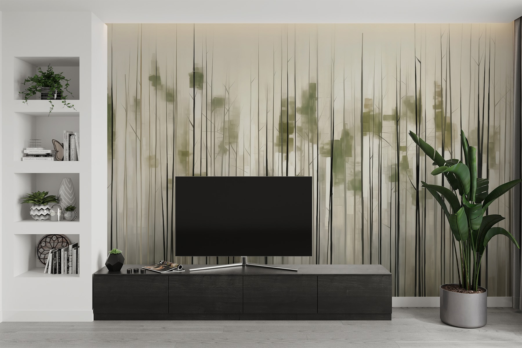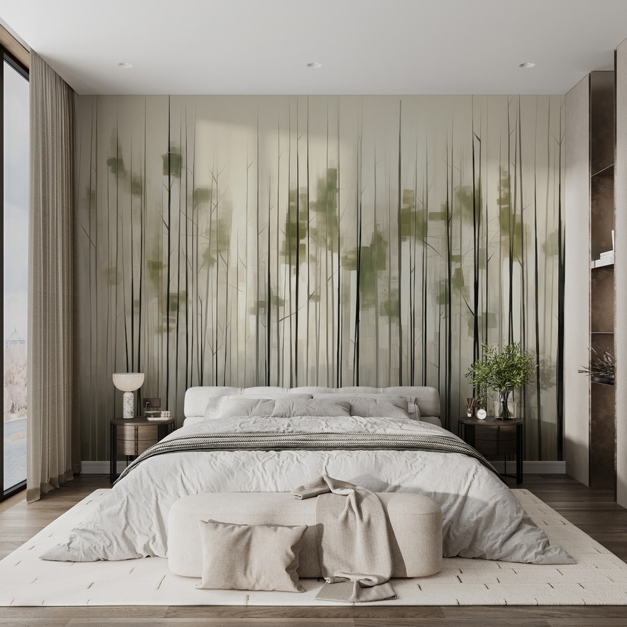 Transform your space into a serene escape with this enchanting mural of trees in a forest. Imagine stepping into a quiet grove, where sunlight dances between the branches and a gentle breeze whispers secrets. This mural brings that calming vibe right to your walls. The soft greens and elegant lines create a dreamy atmosphere, making it perfect for cozying up with a book or sipping tea on lazy afternoons. Plus, it’s like bringing the outdoors inside—minus the bugs! Perfect for anyone who craves a touch of nature’s tranquility in their home.