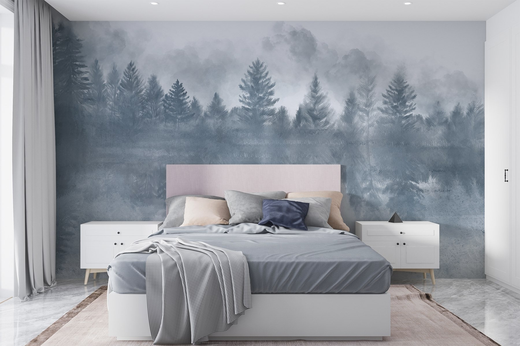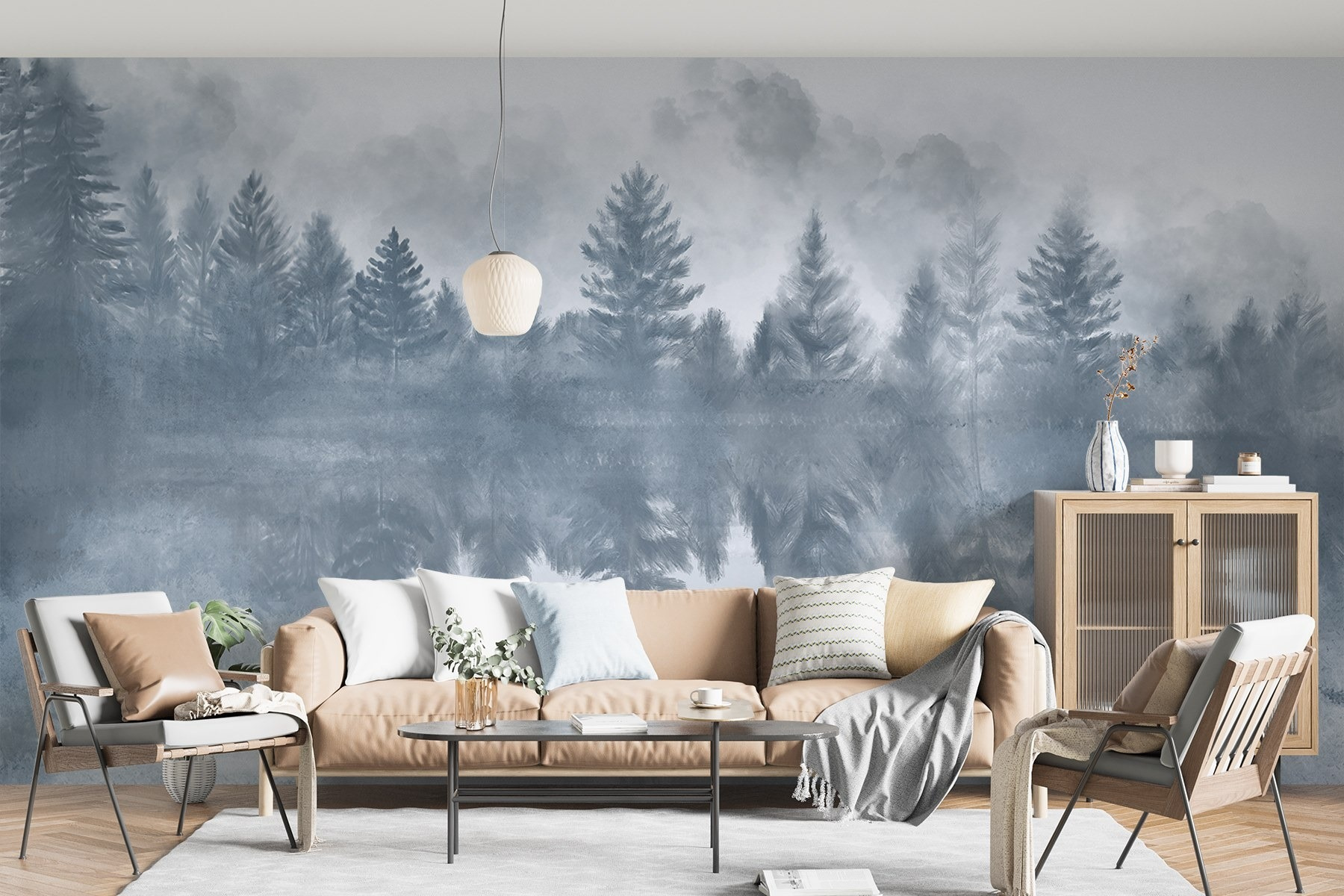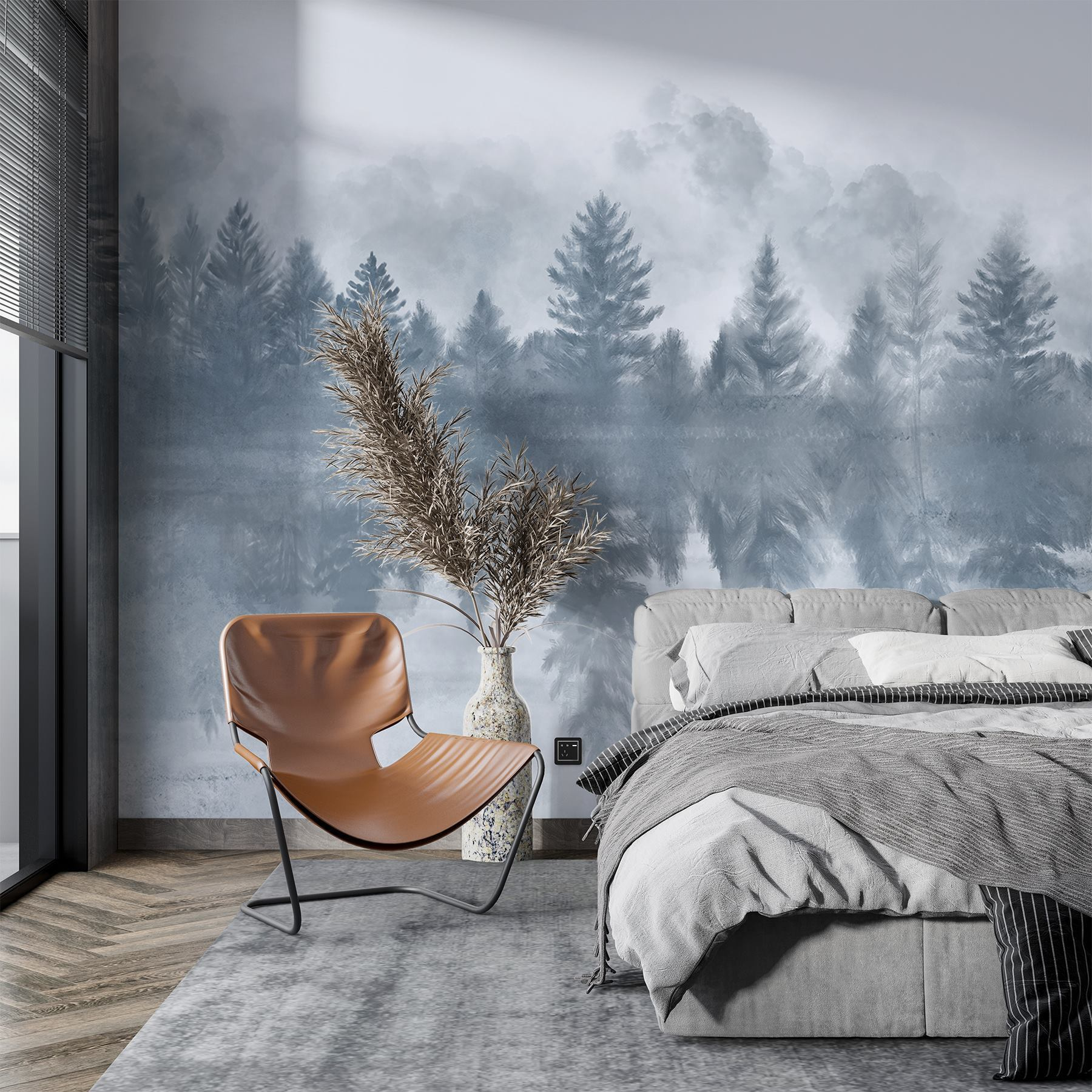 Transform any space into a serene escape with the “Foggy Forest with Trees Reflected in Water” mural. Imagine walking into your room and feeling like you’ve stepped into a dreamy forest—mist swirling around the trees, calm water reflecting the tranquility. This mural captures nature’s stillness, perfect for those days when life gets a bit too hectic.