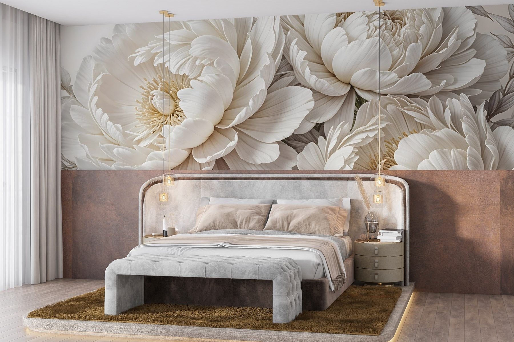 Transform your space with the “Group of White Flowers” wall mural—a breath of fresh air that feels like an invitation to a serene garden. Imagine walking into a room and being greeted by stunning blooms, softly whispering elegance. These oversized flowers, with their intricate details and soothing colors, can turn a plain wall into a captivating focal point.