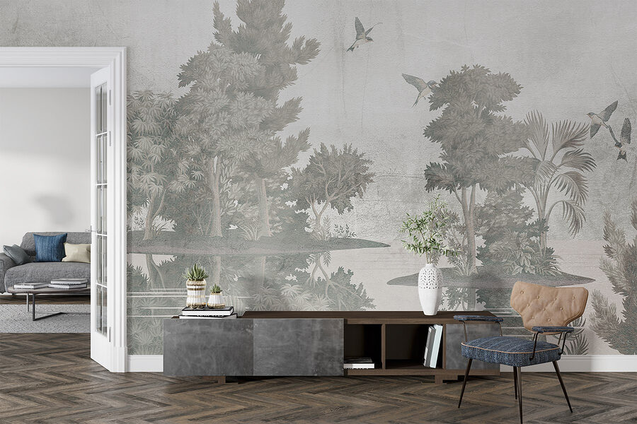 Transform your space with this enchanting mural, “Birds Flying Over Trees.” Imagine stepping into a serene escape, where graceful birds flutter above lush greenery, whispering tales of tranquility. The soft hues create a dreamy vibe, perfect for a living room or cozy reading nook. Just picture curling up with a warm drink, surrounded by nature’s calm—maybe even feeling the urge to take a deep breath, as if you’re immersed in a peaceful forest. This mural isn’t just decor; it’s an invitation to unwind and let the world outside fade away, even if just for a moment. Perfect for those who crave a touch of nature without the hassle of watering plants!