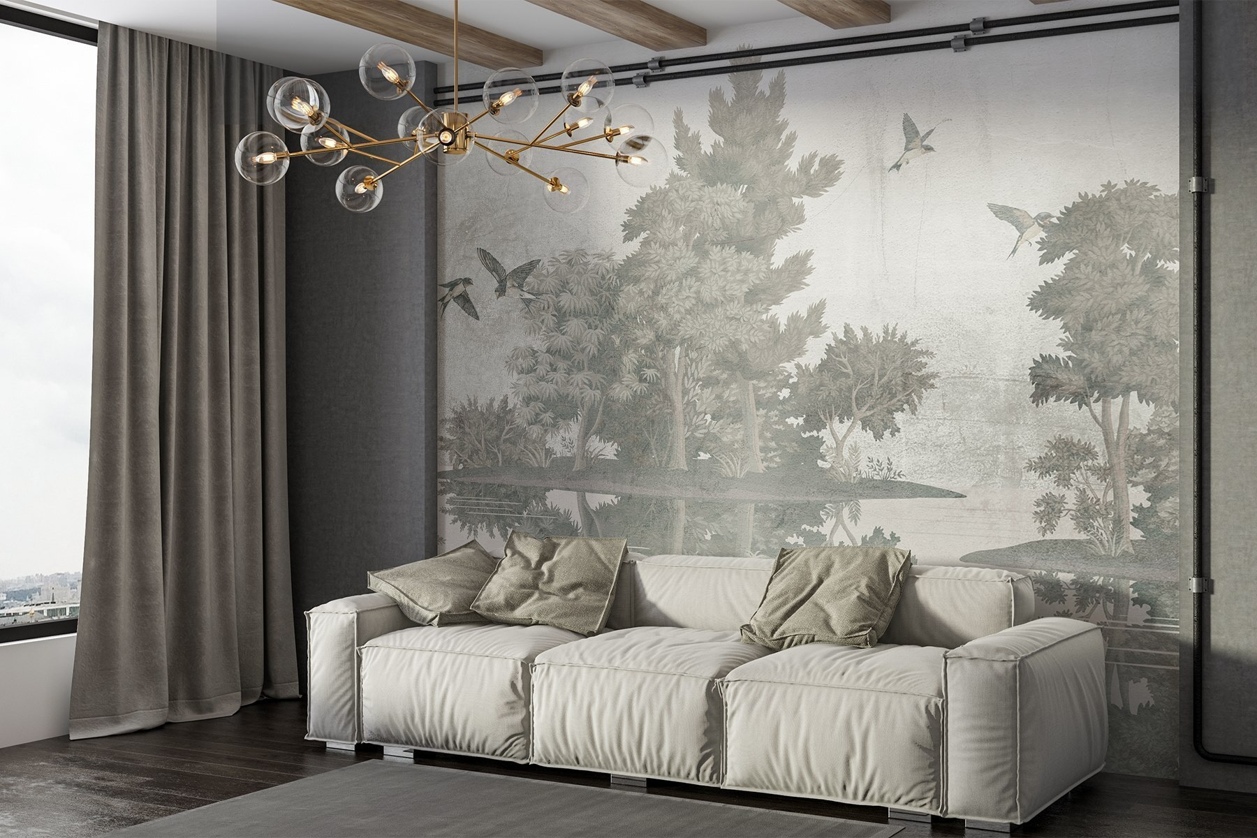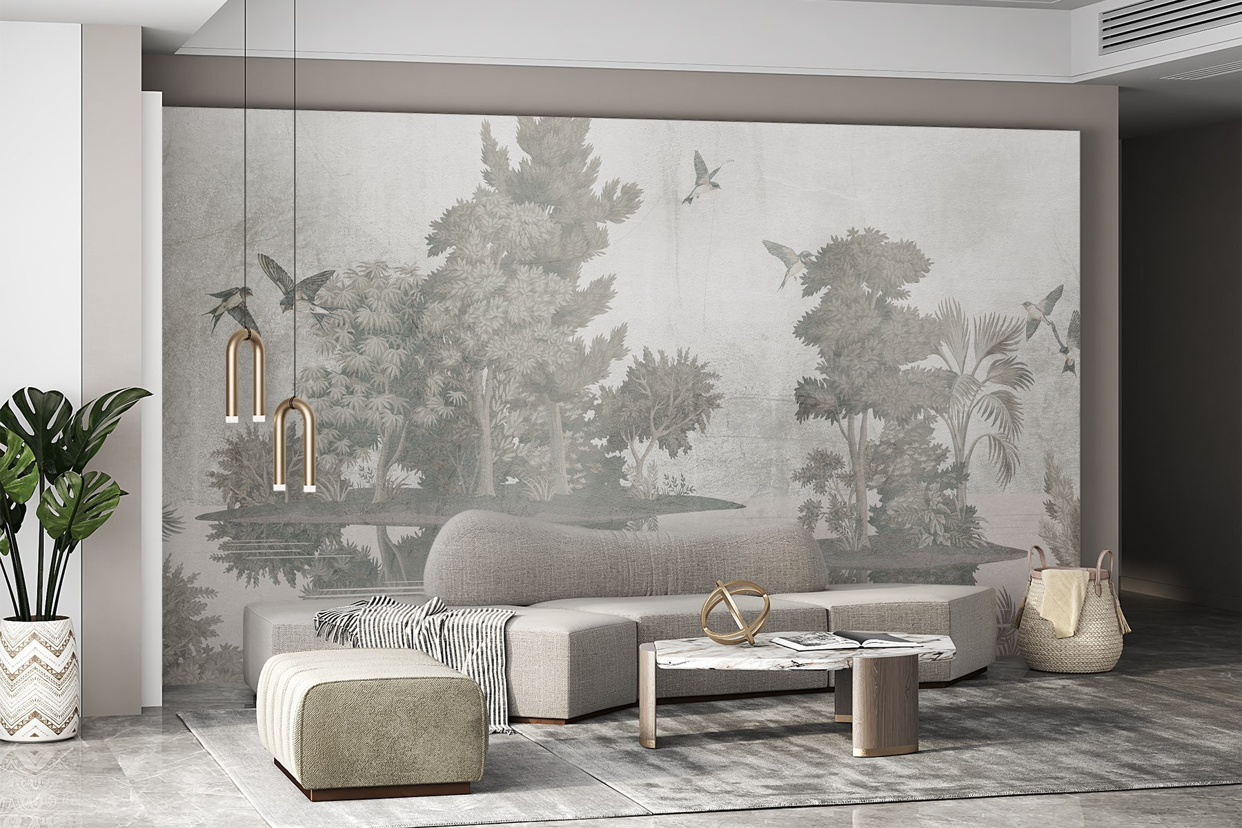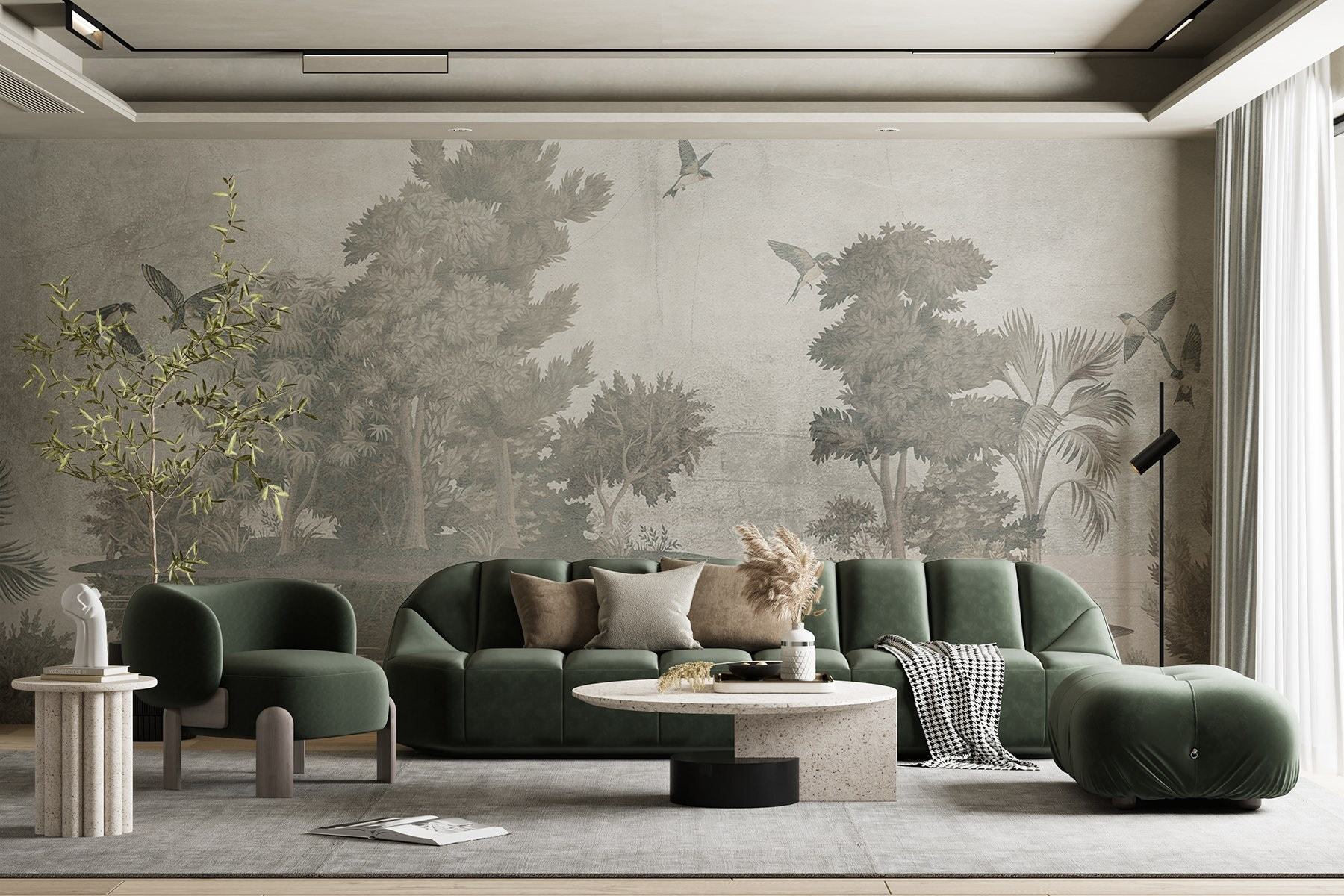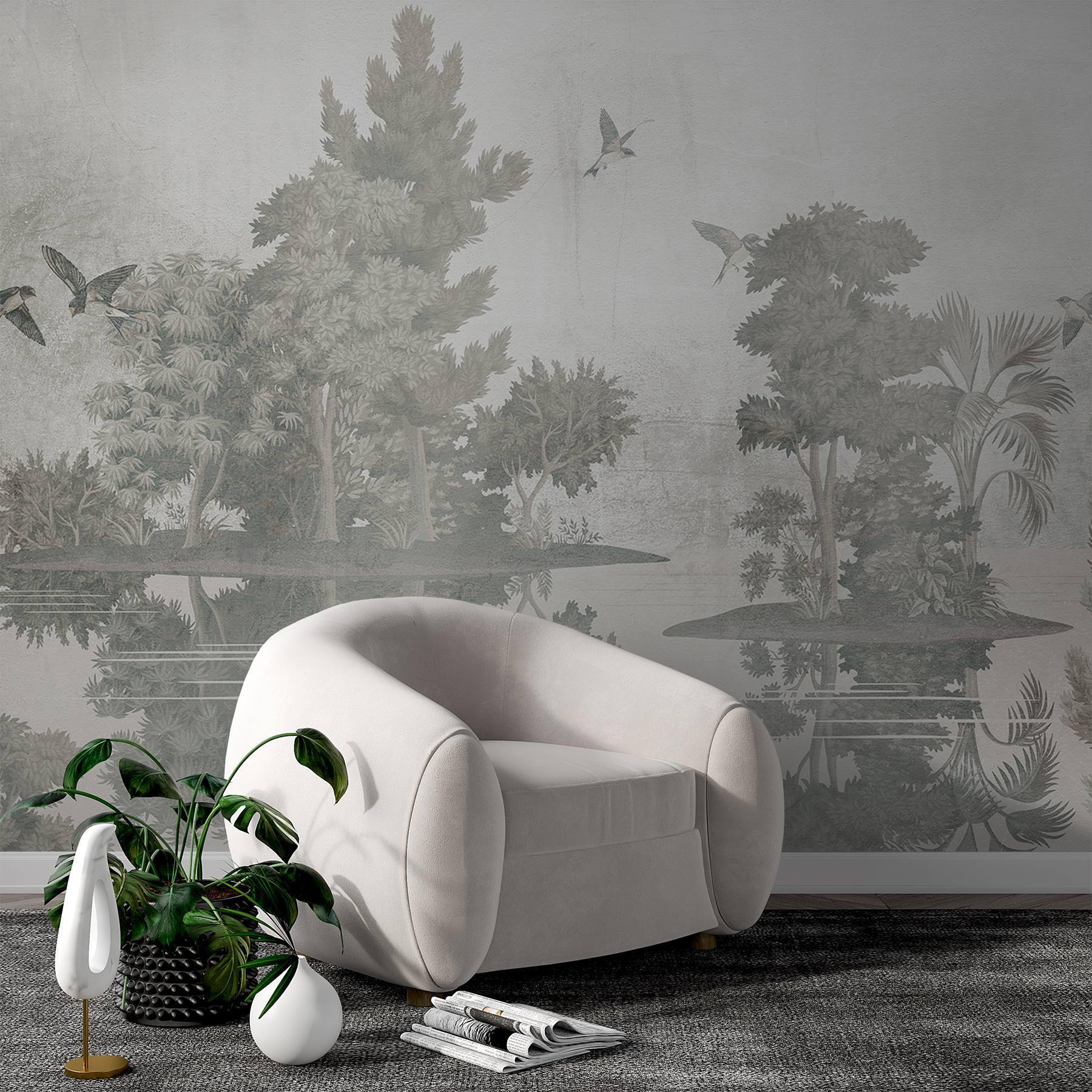 Transform your space with this enchanting mural, “Birds Flying Over Trees.” Imagine stepping into a serene escape, where graceful birds flutter above lush greenery, whispering tales of tranquility. The soft hues create a dreamy vibe, perfect for a living room or cozy reading nook. Just picture curling up with a warm drink, surrounded by nature’s calm—maybe even feeling the urge to take a deep breath, as if you’re immersed in a peaceful forest. This mural isn’t just decor; it’s an invitation to unwind and let the world outside fade away, even if just for a moment. Perfect for those who crave a touch of nature without the hassle of watering plants!