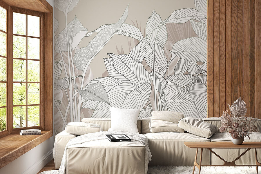 Transform any space with the “Delicate Lines Weave Through Lush Leaves” mural. Imagine stepping into a calming oasis right from your living room. Those intricate lines mingling with the soft, muted background create a vibe that’s both chill and chic—perfect for those days when a little nature therapy is just what the doctor ordered.